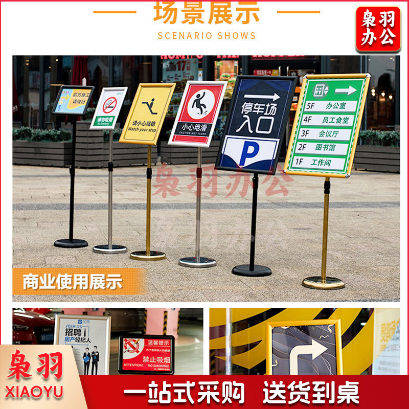 铝合金立牌立式海报架 (A2银色直角立牌整套)商场单面展示牌海报架广告架 伸缩广告牌