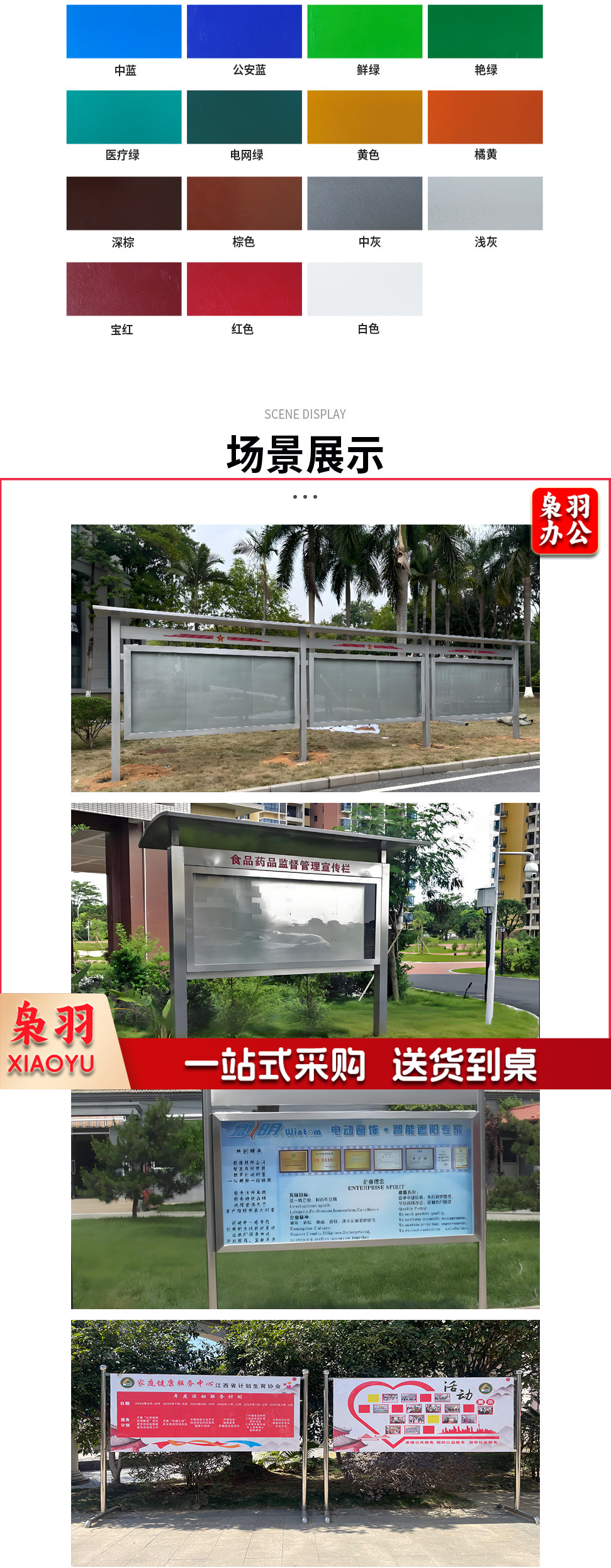 广告栏广告牌标识牌300*521cm户外街道河道公园提示警示广告牌 校园文化长廊小品不锈钢宣传栏(现货+圆柱+雨棚+楣板)