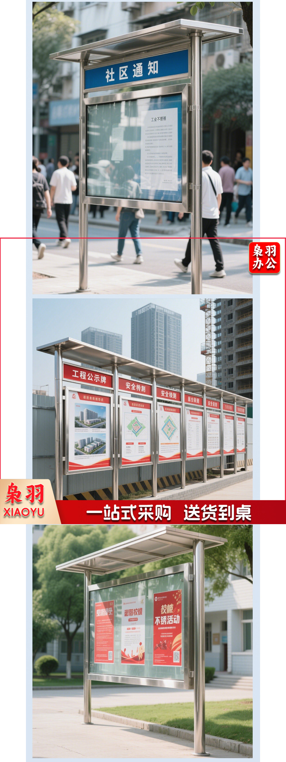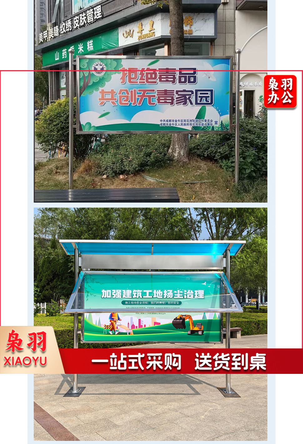 广告栏广告牌标识牌300*251*240*120cm户外街道河道公园提示警示广告牌 校园文化长廊小品不锈钢宣传栏(现货+楣板+雨棚)