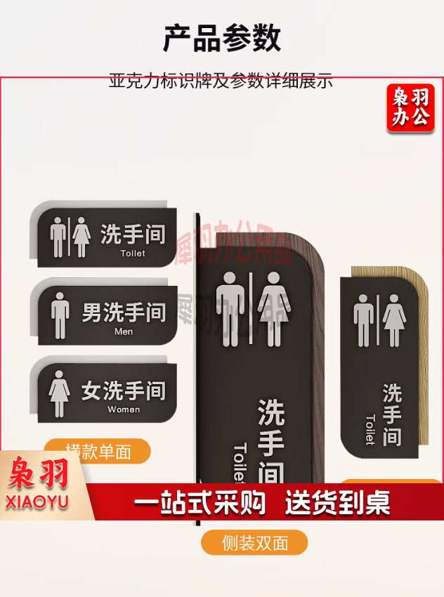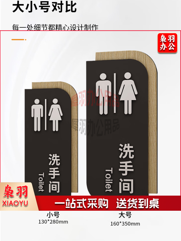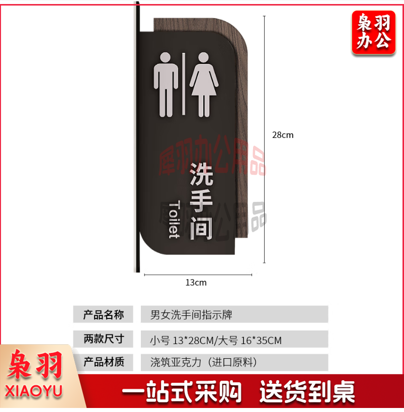 山顶松 高档男女卫生间指示牌 酒店WC厕所标识牌 门牌双面侧装洗手间提示牌 13x28cm 男女竖一对 深木纹