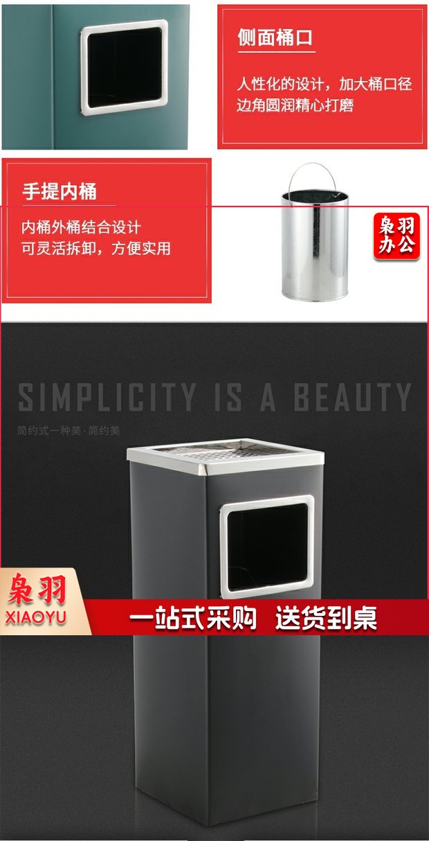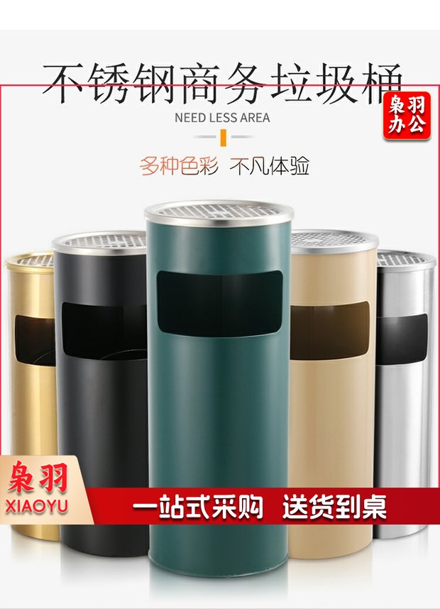 不锈钢酒店大堂垃圾桶烟蒂柱灭烟桶带烟灰缸室外吸烟区电梯口立式(丽格圆形黑(镀锌阻燃内胆)