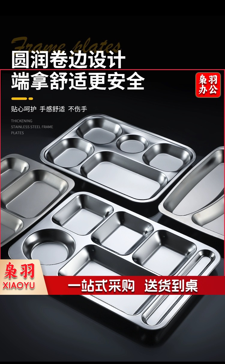 304加厚不锈钢快餐盘分格餐盘(5格小圆(带勺位)1.2厚 长35.5cmx宽26.7cmx高2.3cm)儿童幼儿园学生成人食堂快餐盘餐具