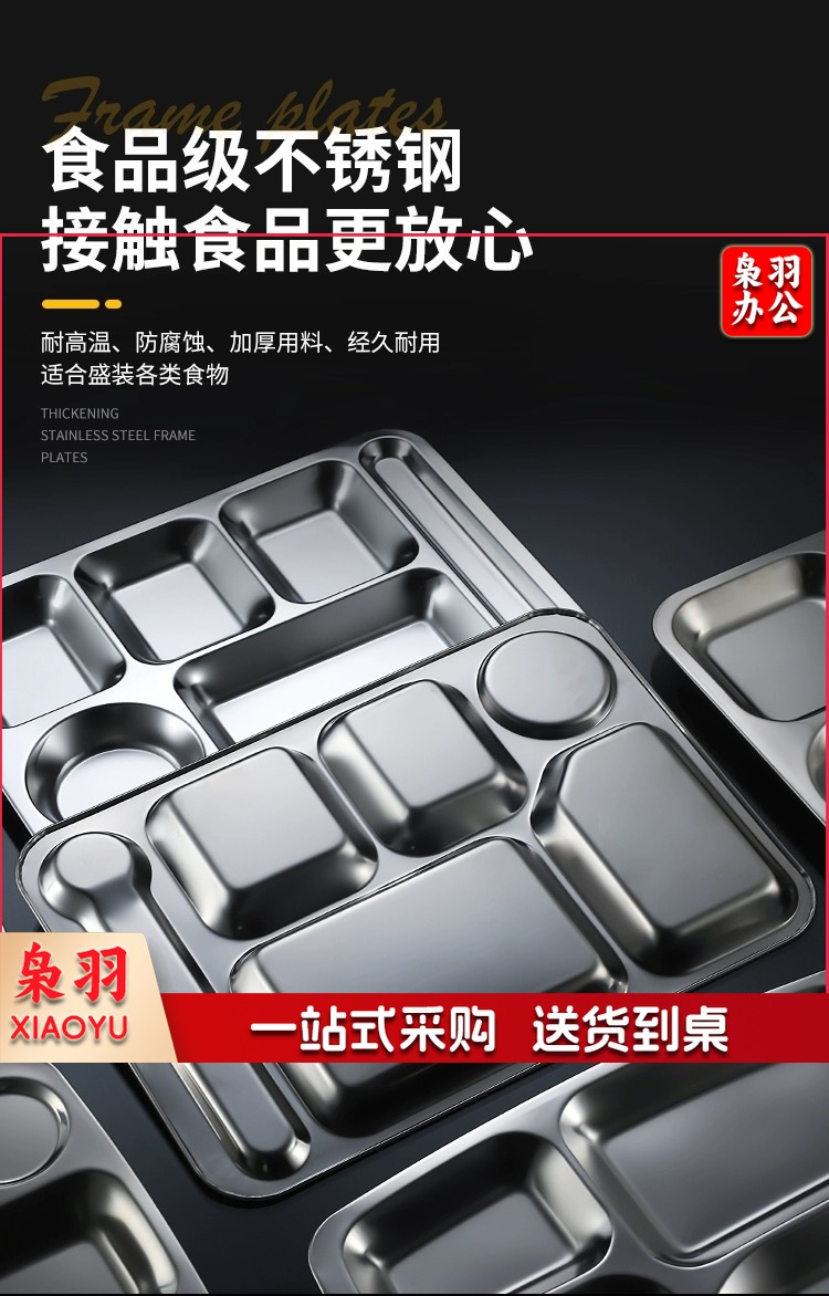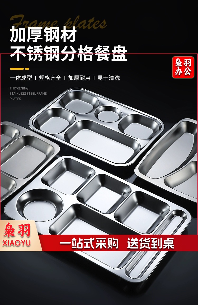 304加厚不锈钢快餐盘分格餐盘(5格中圆(无勺位)1.0厚 长30.5CM*宽23.5CM*高2CM)儿童幼儿园学生成人食堂快餐盘餐具