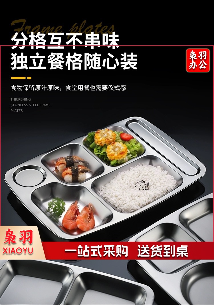 304加厚不锈钢快餐盘分格餐盘(6格小圆(带勺位)1.0厚长35.6cmx宽26.7cmx高2.4cm)儿童幼儿园学生成人食堂快餐盘餐具