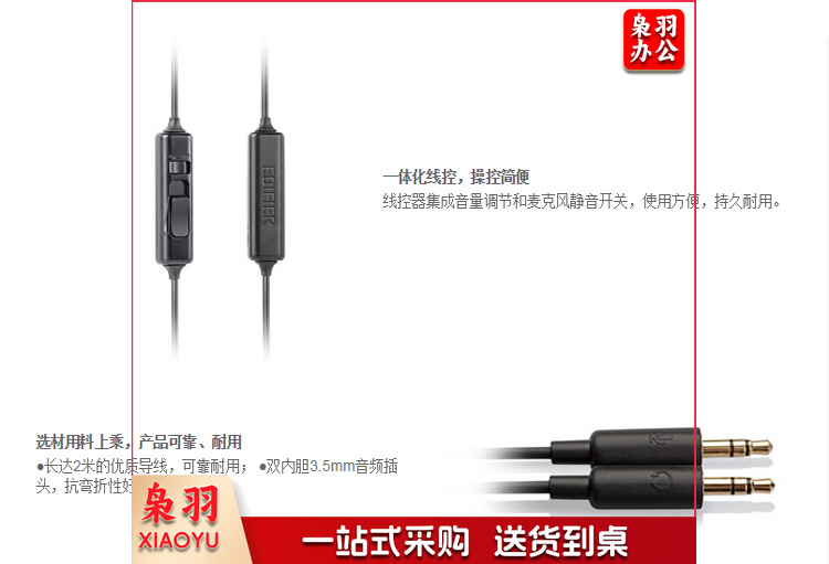 1100146768EA 漫步者 K800 电脑耳麦 有线 黑色 全新