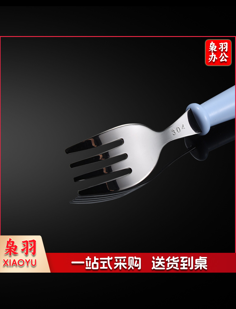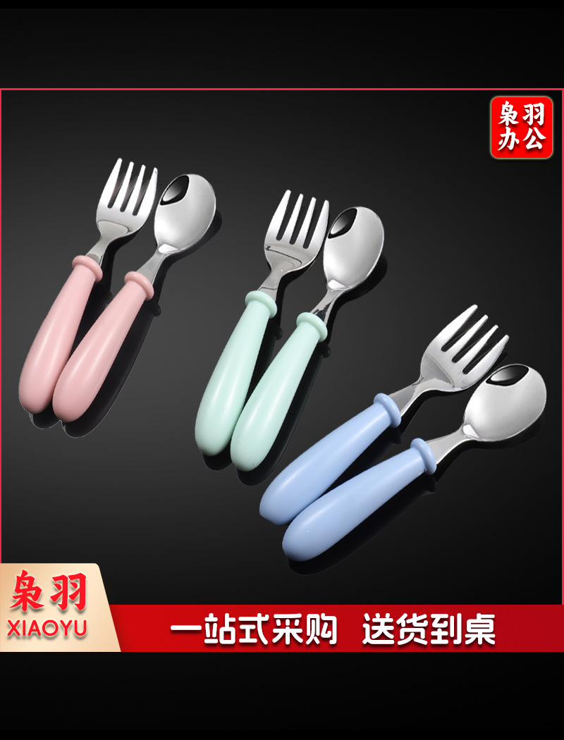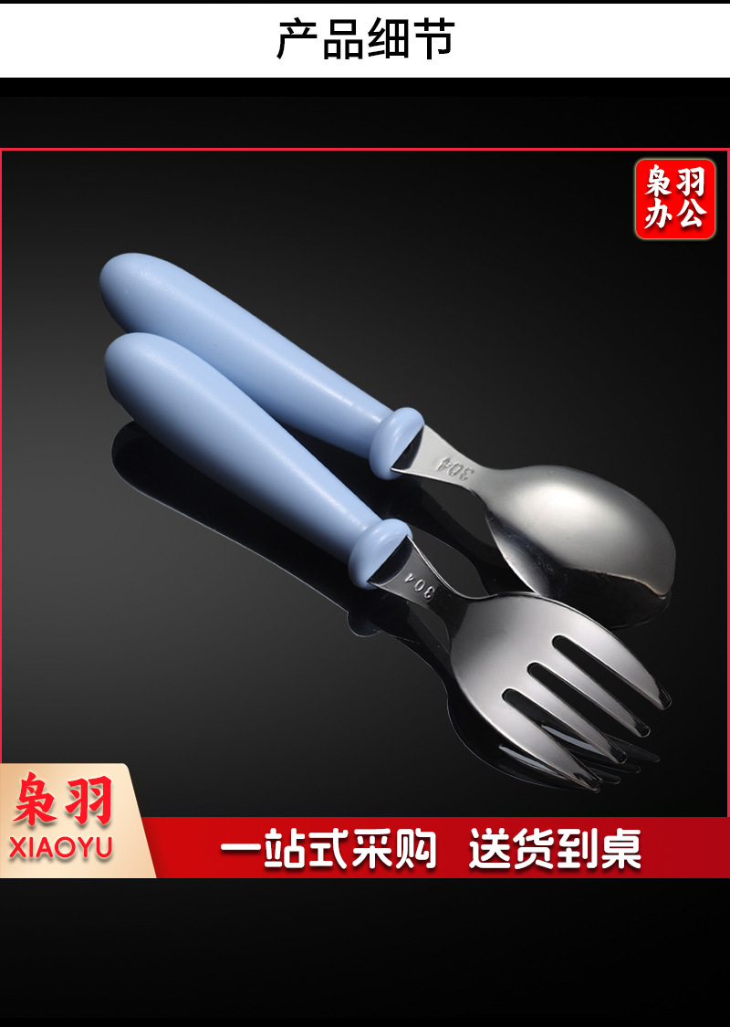 304不锈钢餐具套装婴幼宝宝辅食训练吃饭勺儿童便携喂养勺叉汤匙/304餐具三件套【北欧蓝色】