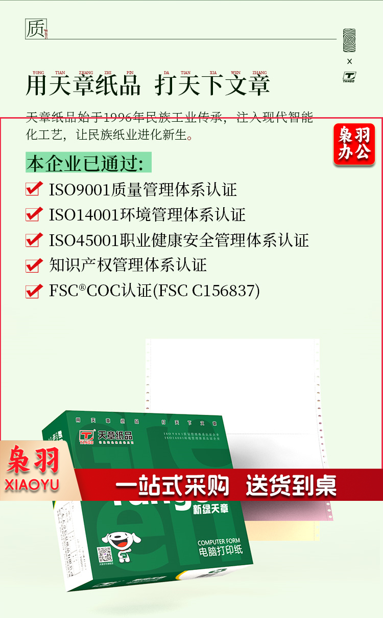 天章/TANGO 241-3S 天章三联整张 电脑打印纸 全白1000页/(单位:箱)