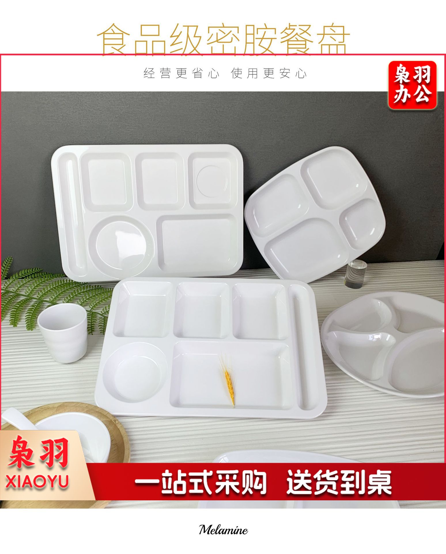 A5白色密胺餐具快餐盘(8.5寸两格餐盘-耐高温)学生食堂分格餐盘四格六格盘碗碟盘套装