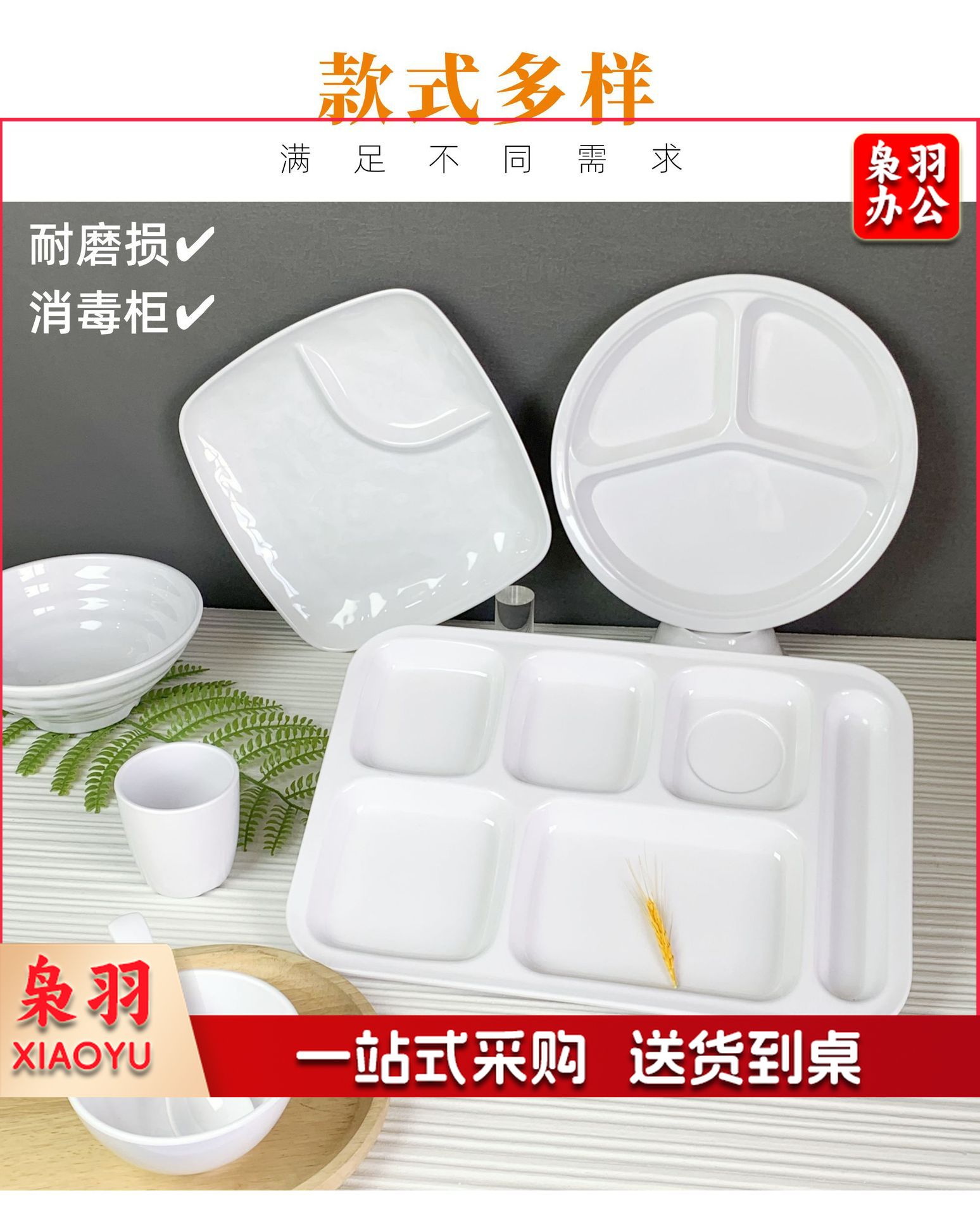 A5白色密胺餐具快餐盘(套装-12.5寸五格餐盘)学生食堂分格餐盘四格六格盘碗碟盘套装