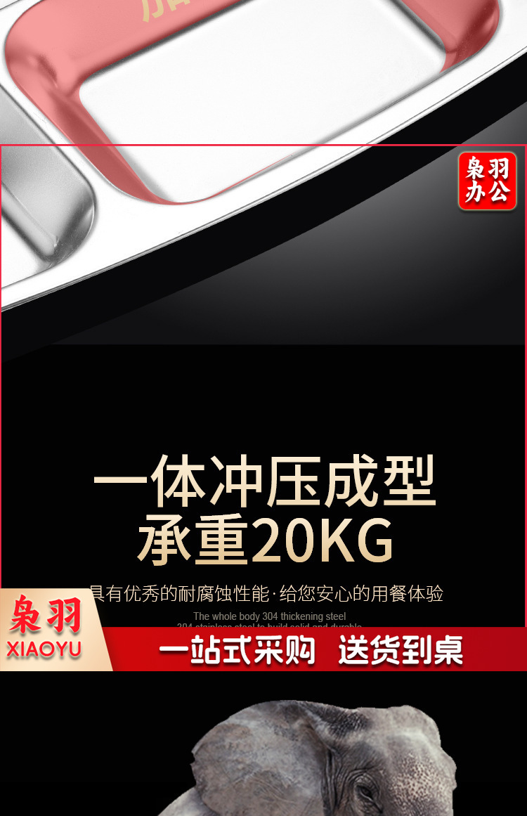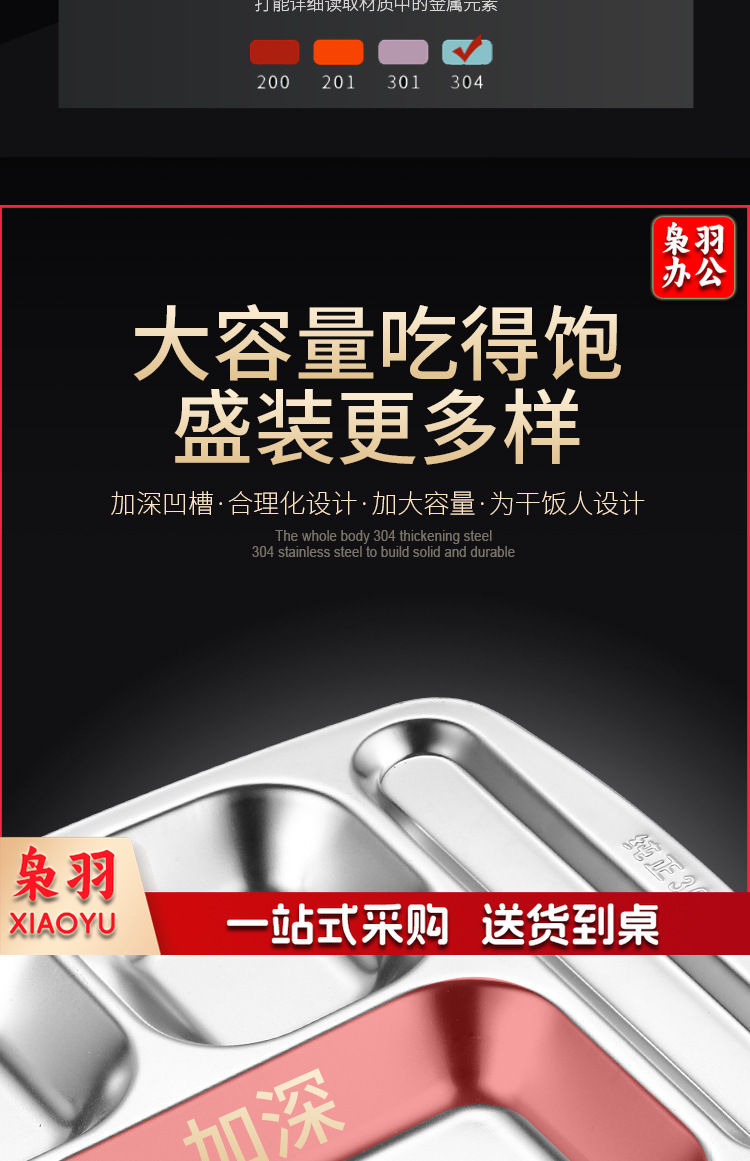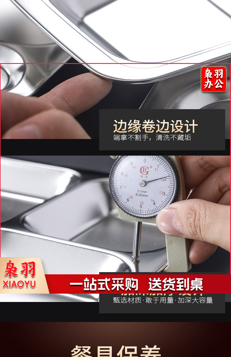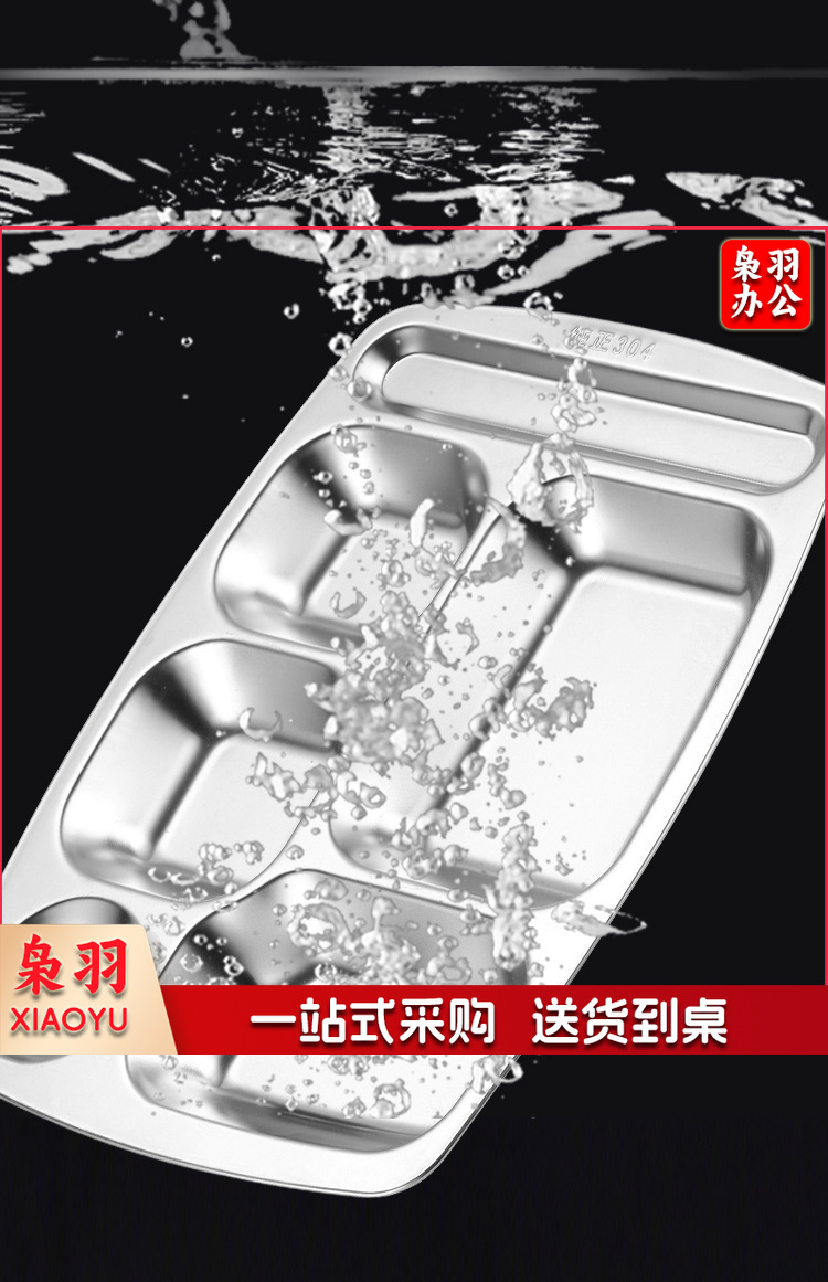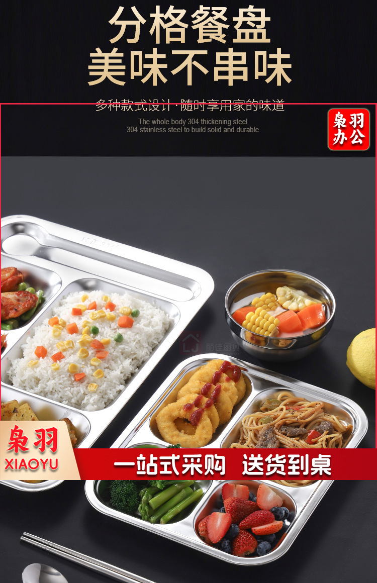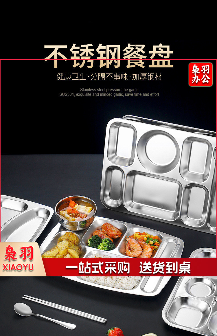 304食堂分餐盘食品级(304大五格餐盘+碗+筷+勺)学生分格碗筷勺套装盘子加厚不锈钢餐具