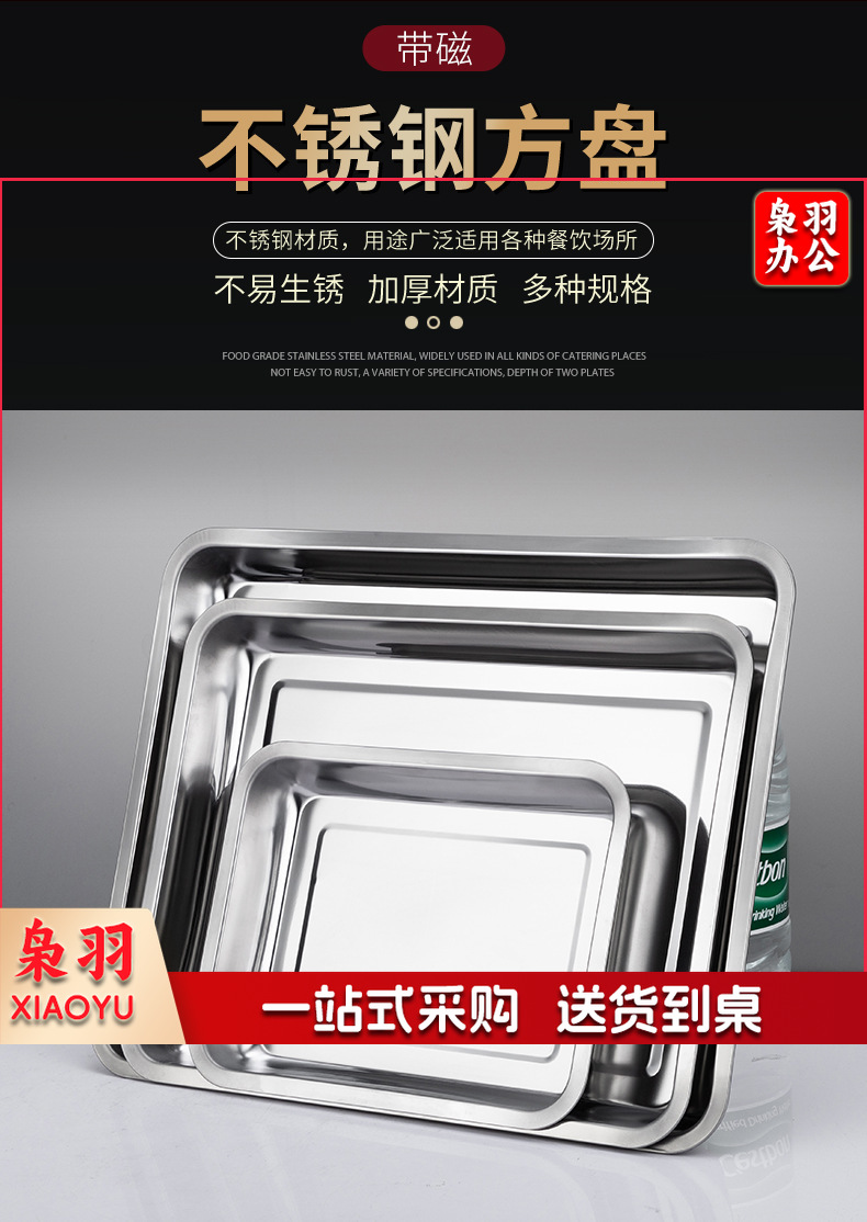 不锈钢方盘不锈钢托盘(50*35*2 cm)长方形备菜盘子不锈钢餐盘(特厚食品级304材质方盘)