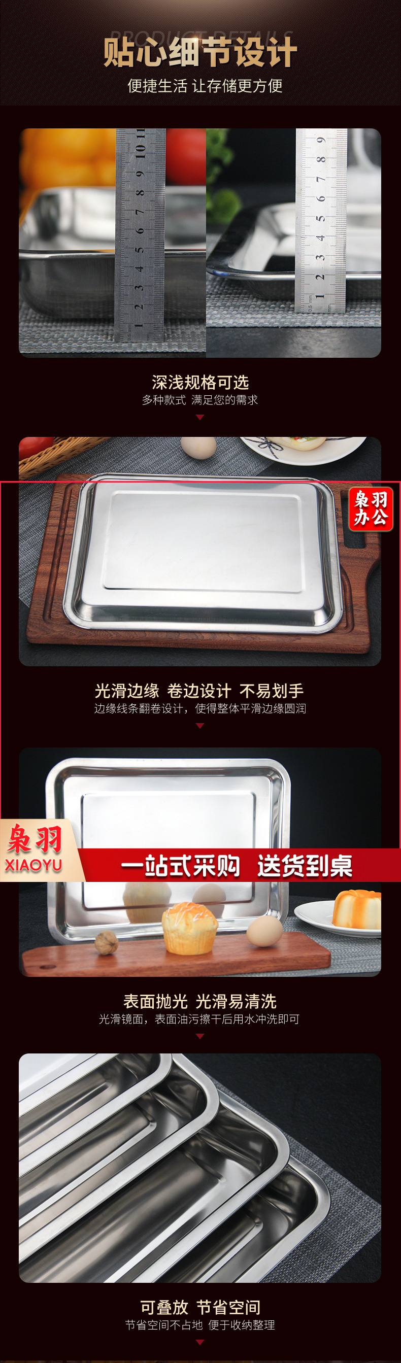 不锈钢方盘不锈钢托盘(60*40*4.8 cm)长方形备菜盘子不锈钢餐盘(特厚食品级304材质方盘)