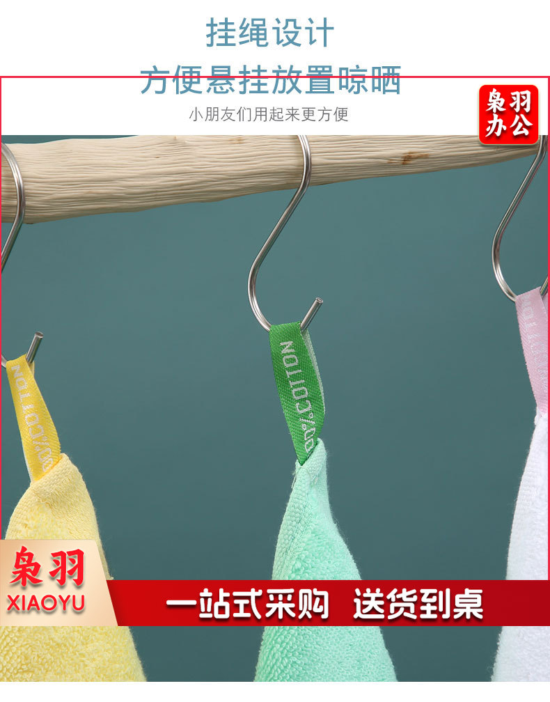 幼儿园专用擦嘴儿童方巾纯棉带挂绳全棉吸水擦手擦脸毛巾纯色加厚(尺寸齐全)一角挂绳