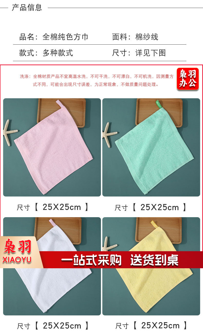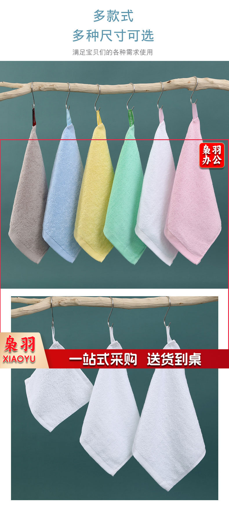 幼儿园专用擦嘴儿童方巾纯棉带挂绳全棉吸水擦手擦脸毛巾纯色加厚(尺寸齐全) 一角挂绳