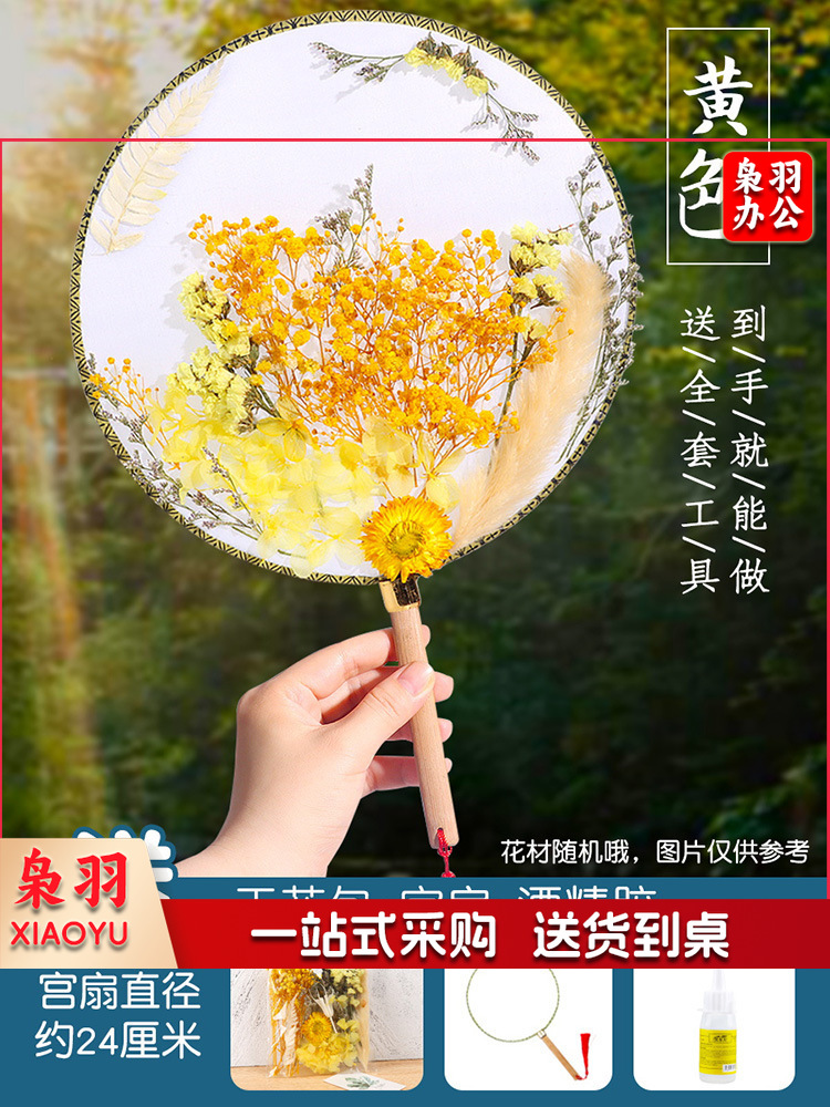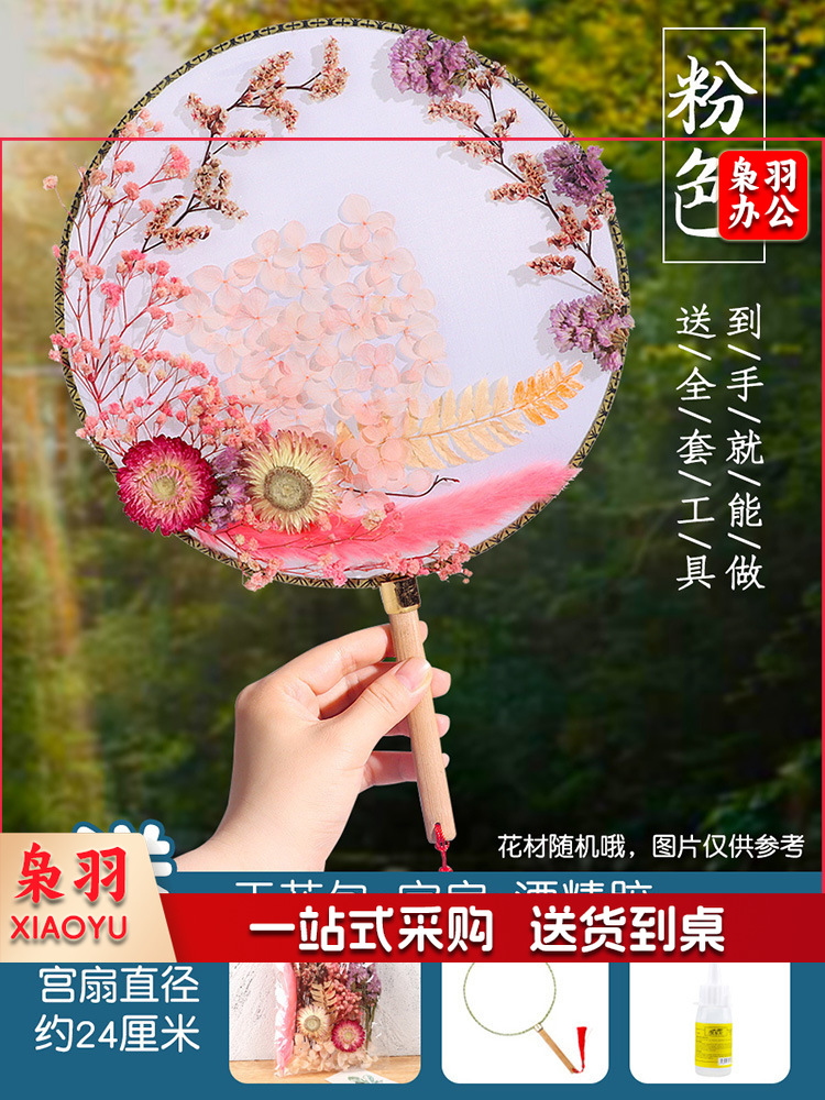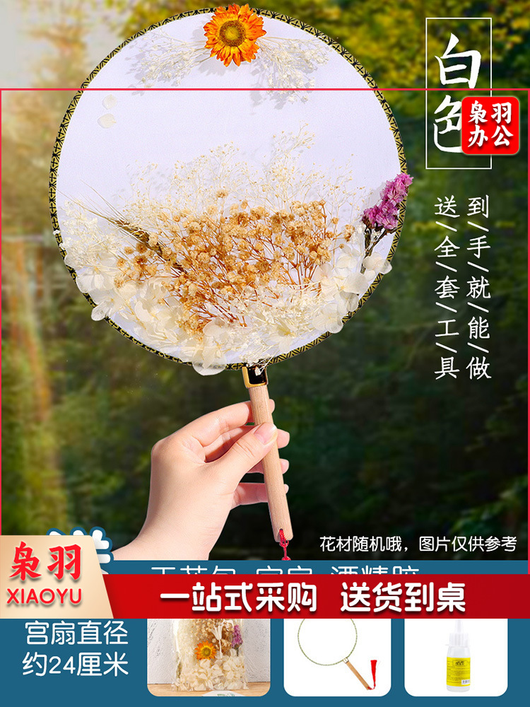感恩节礼物永生花干花团扇古风扇子diy儿童手工材料包幼儿园(基础款袋装)