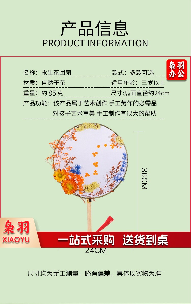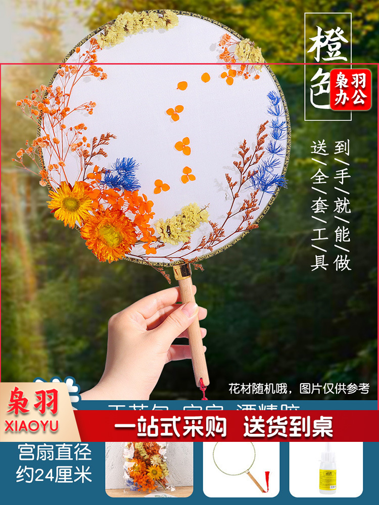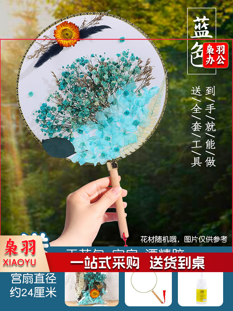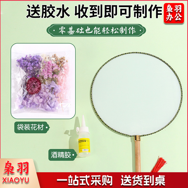 感恩节礼物永生花干花团扇古风扇子diy儿童手工材料包幼儿园(基础款袋装)
