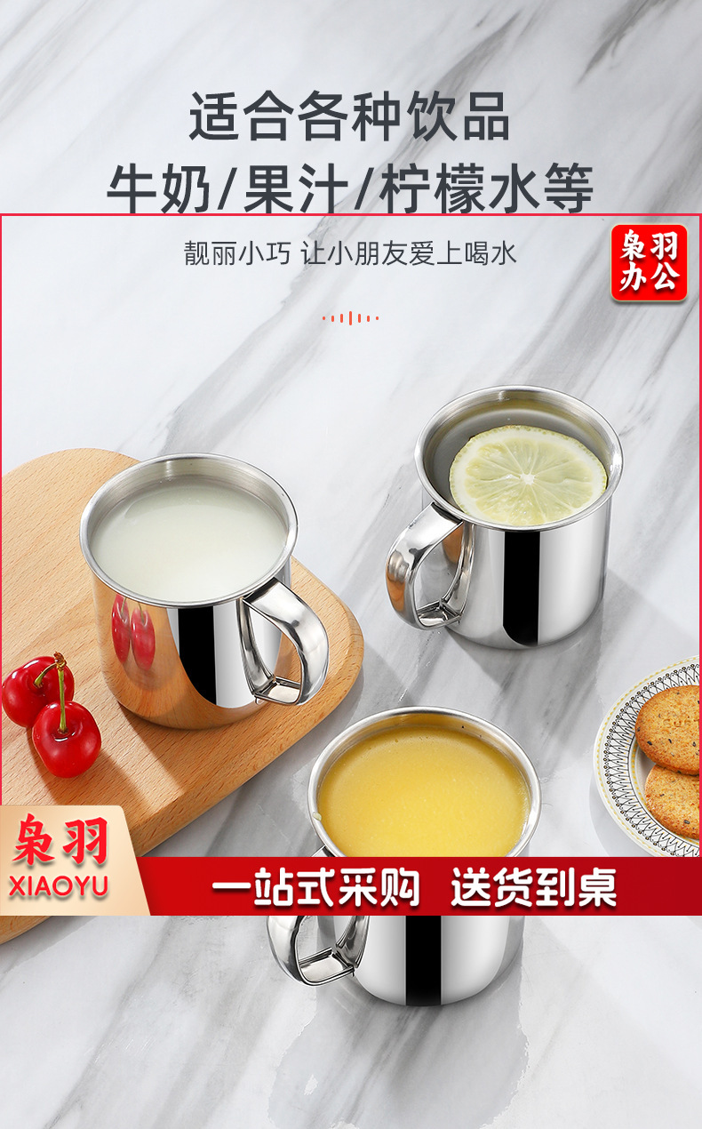幼儿园304不锈钢口杯水杯茶杯茶缸子儿童带手柄小水杯喝水杯缸子(304款【7.6cm*7cm】260ml口杯)