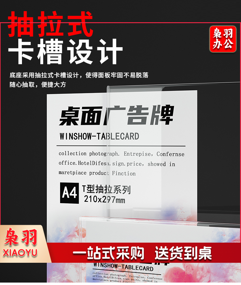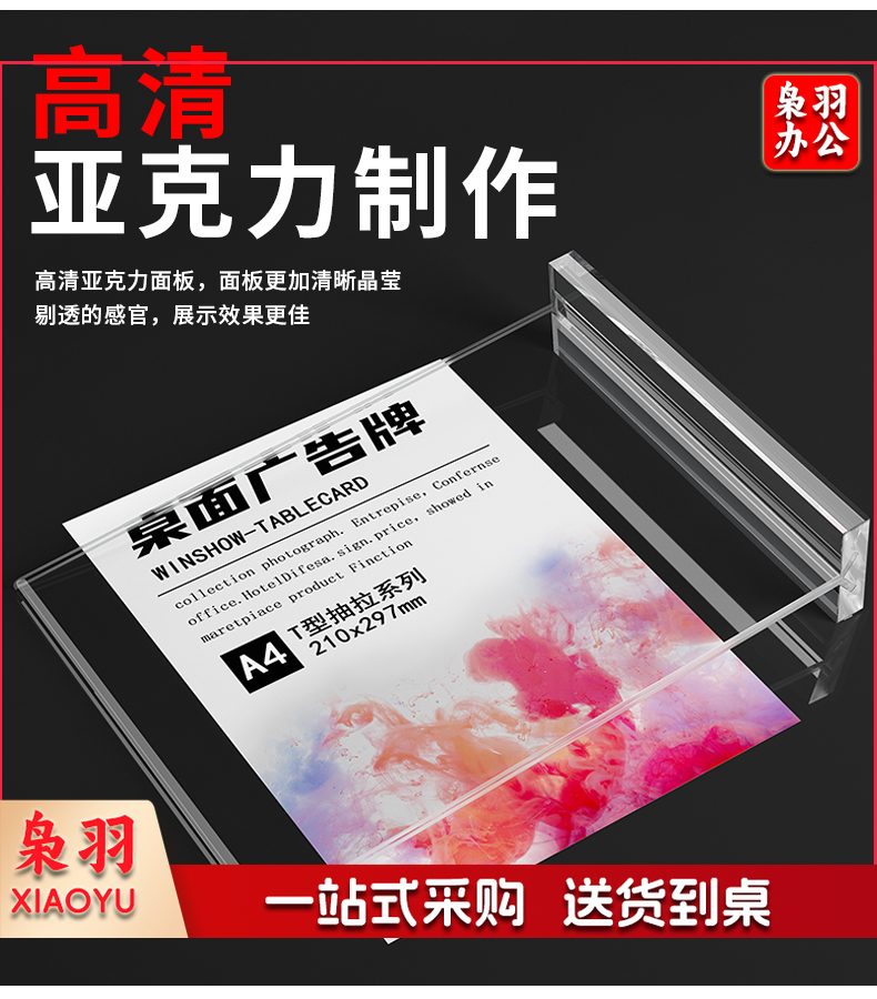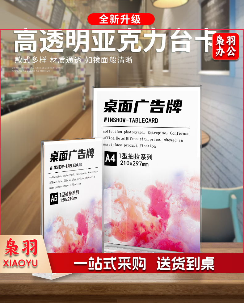 台卡亚克力台卡A 4桌牌A5立牌抽拉强磁台签展示牌桌卡个性创意( T型抽拉式A6竖款 100*150mm)