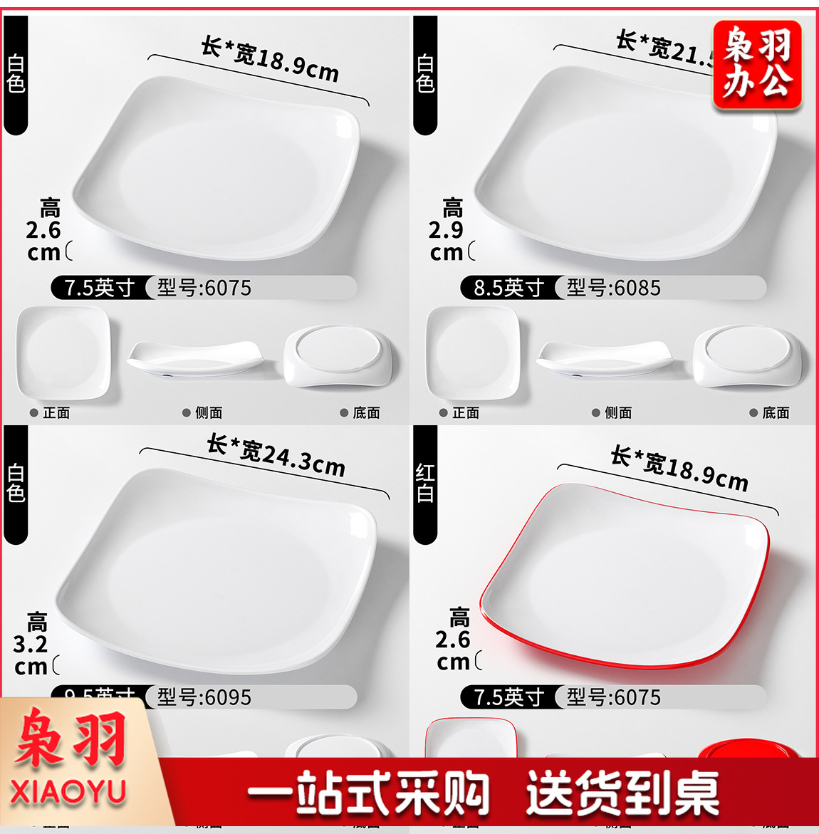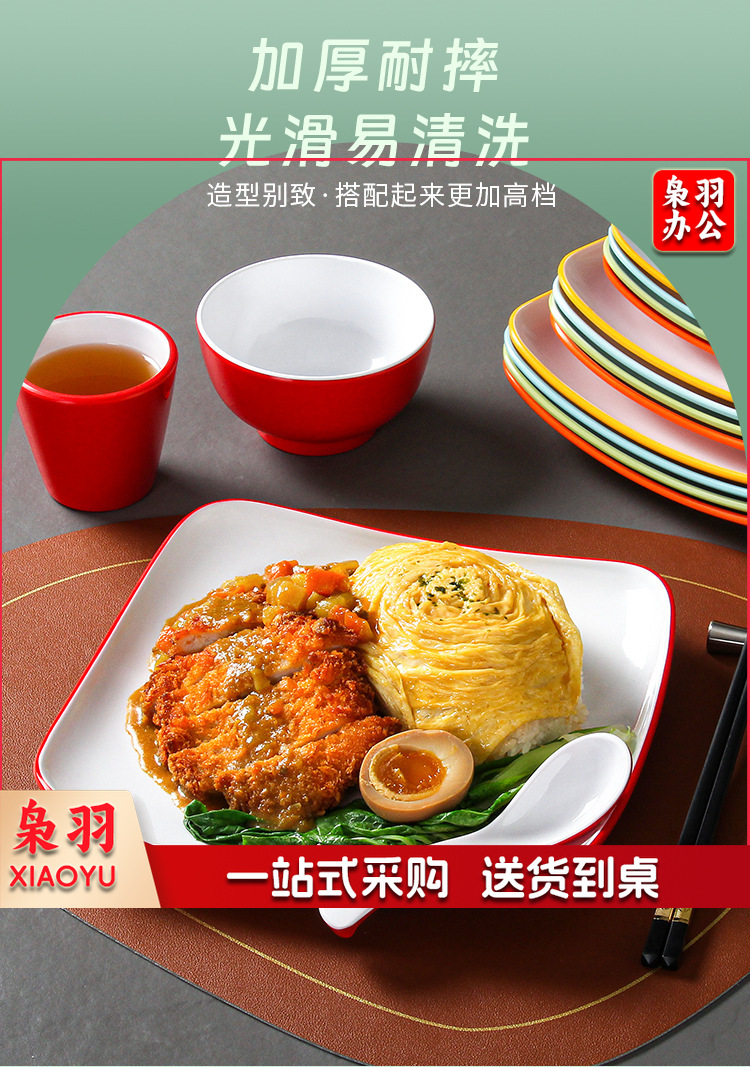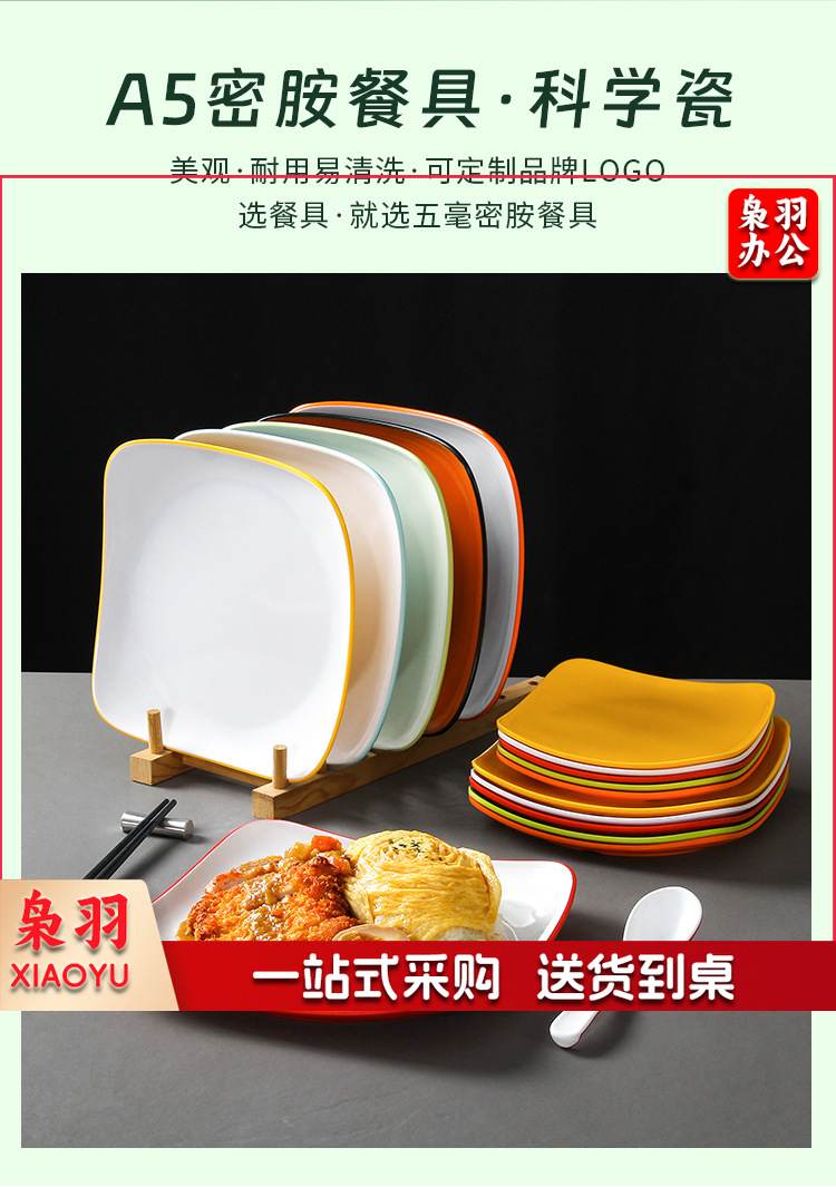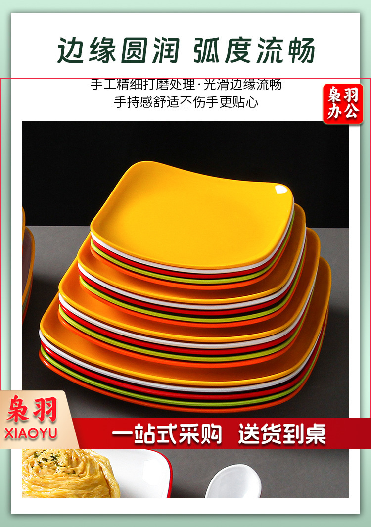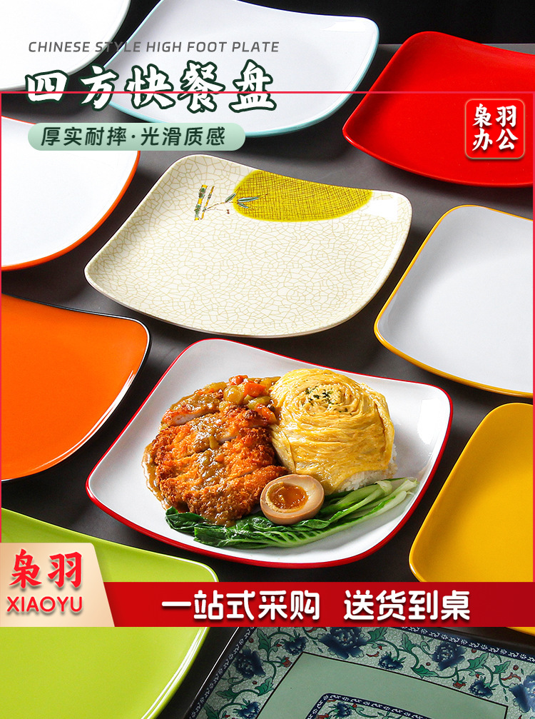 密胺盘子商用餐饮方盘饭店快餐炒粉炒面炒饭炒菜盖浇饭盖饭专用盘(6075白色7.5英寸)