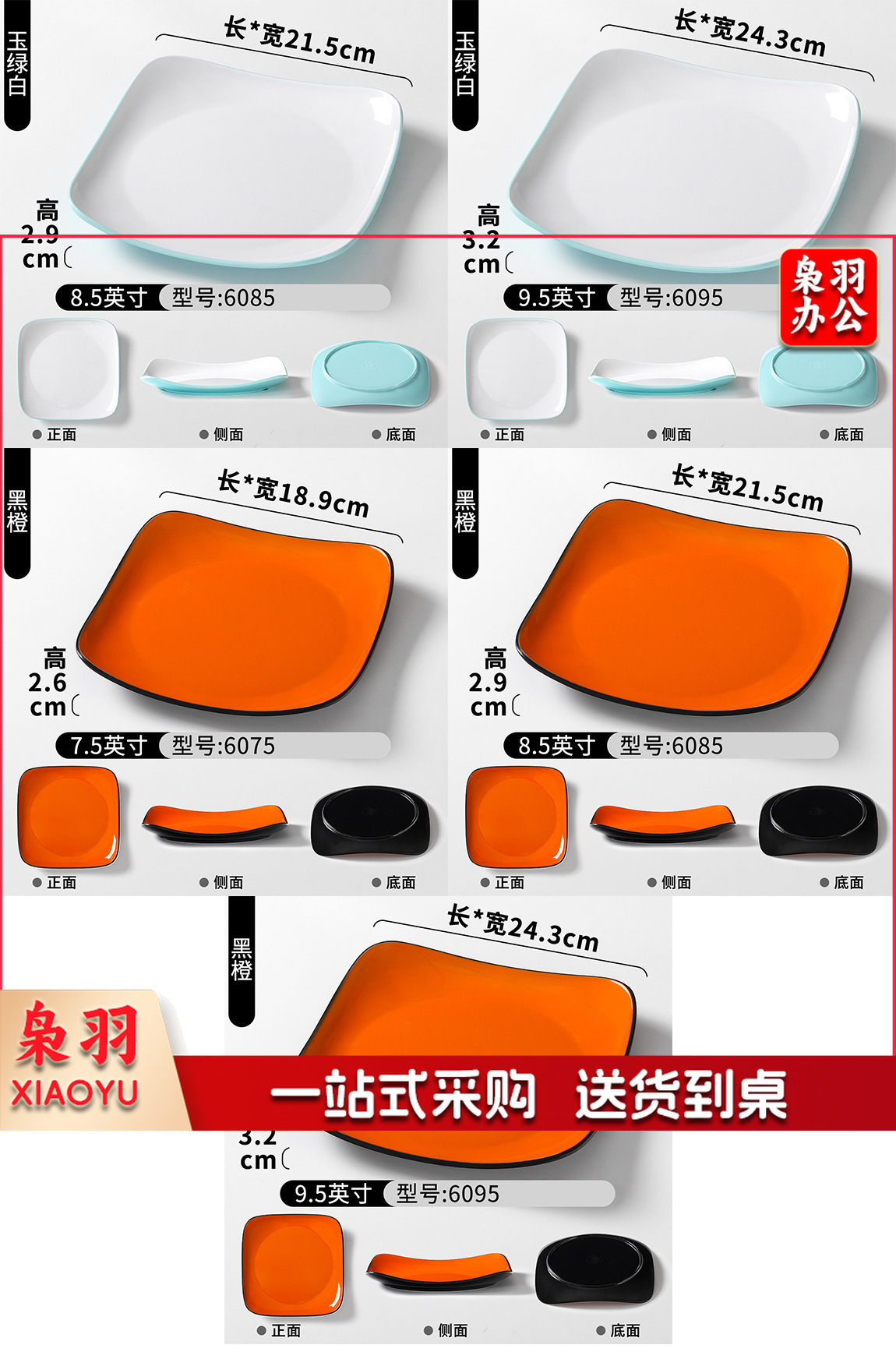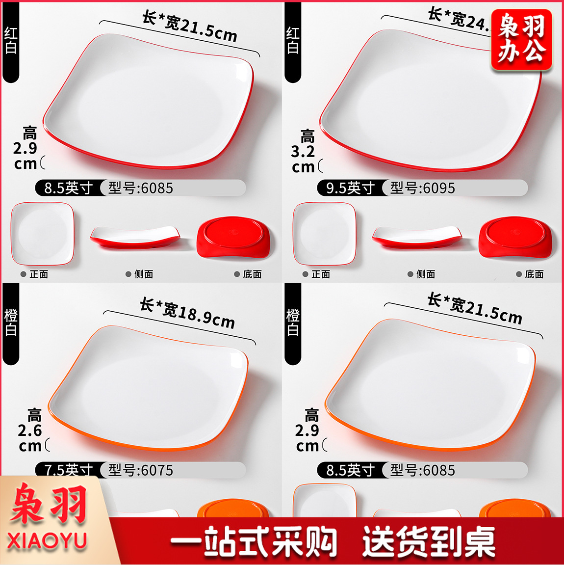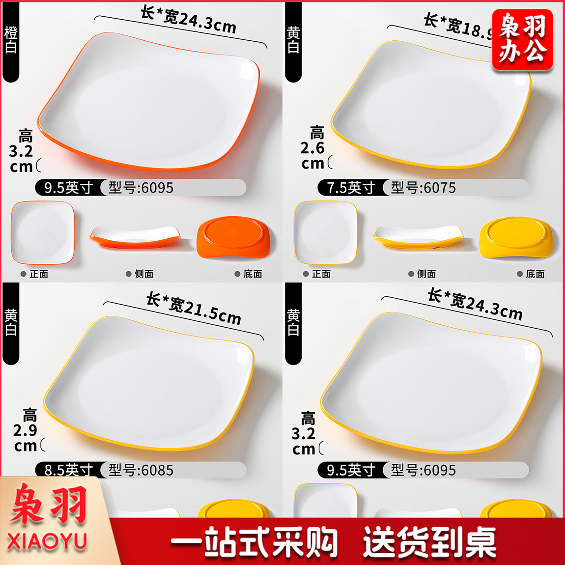 密胺盘子商用餐饮方盘饭店快餐炒粉炒面炒饭炒菜盖浇饭盖饭专用盘(6075白色7.5英寸)