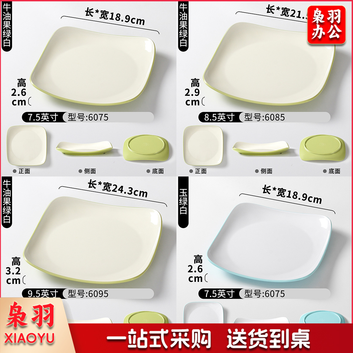 密胺盘子商用餐饮方盘饭店快餐炒粉炒面炒饭炒菜盖浇饭盖饭专用盘(6085白色8.5英寸)