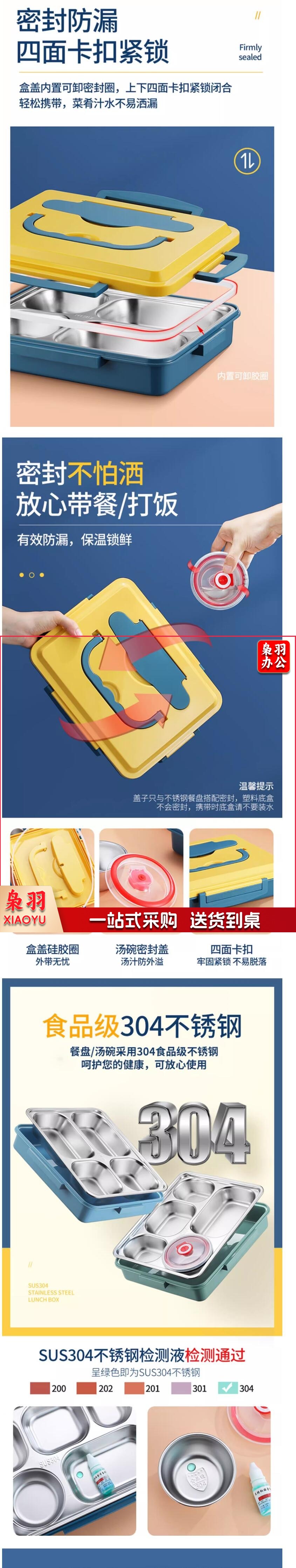 304不锈钢保温饭盒 分格餐盒 大号 天空蓝5格+汤碗 货号:LJ