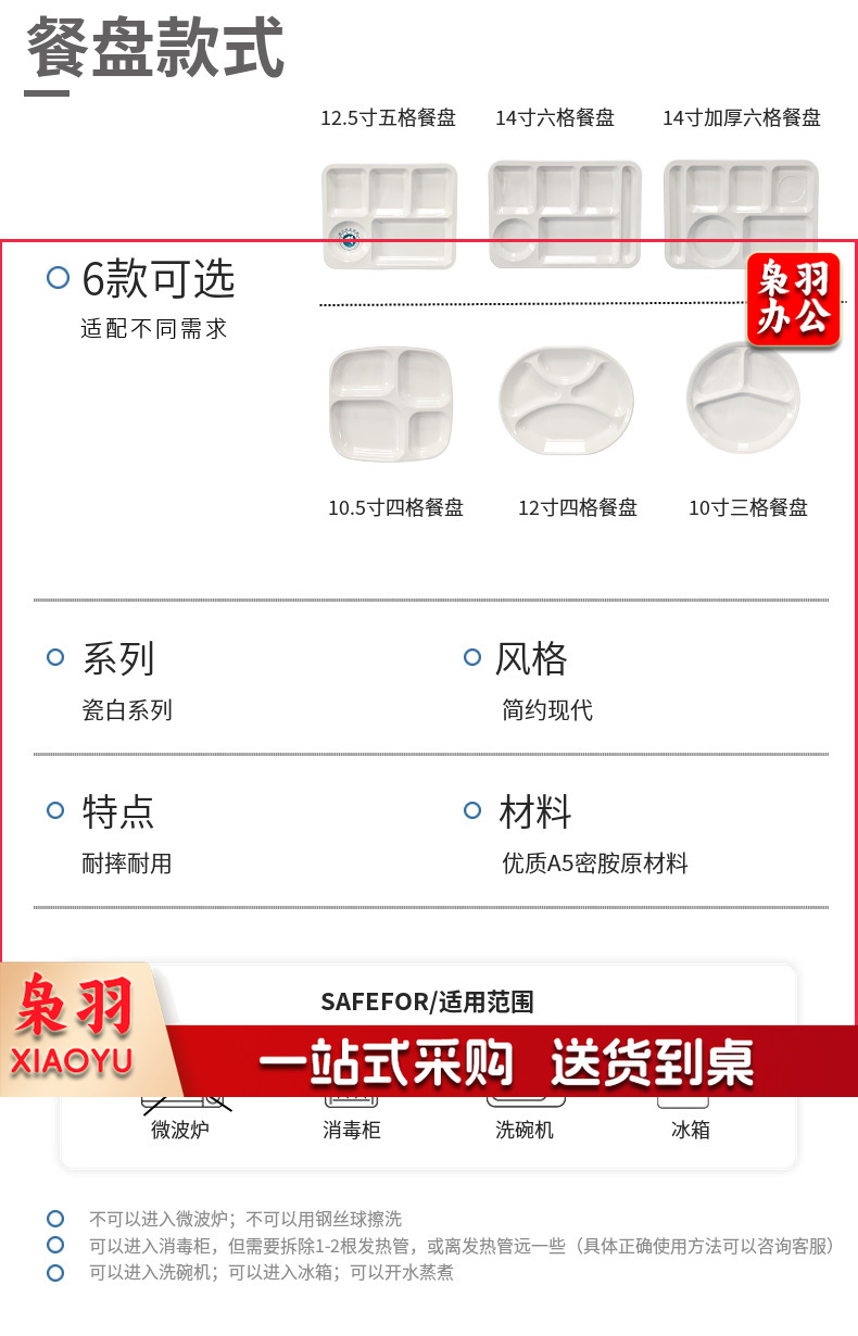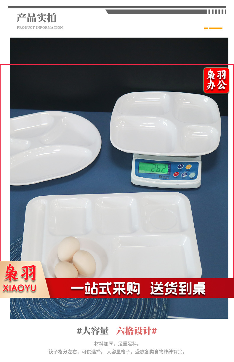 10.5寸 A5密胺长方形四格餐盘 食堂分格餐盘 白色.