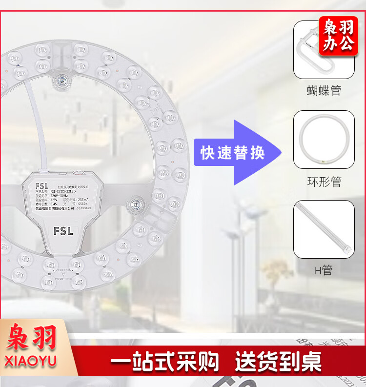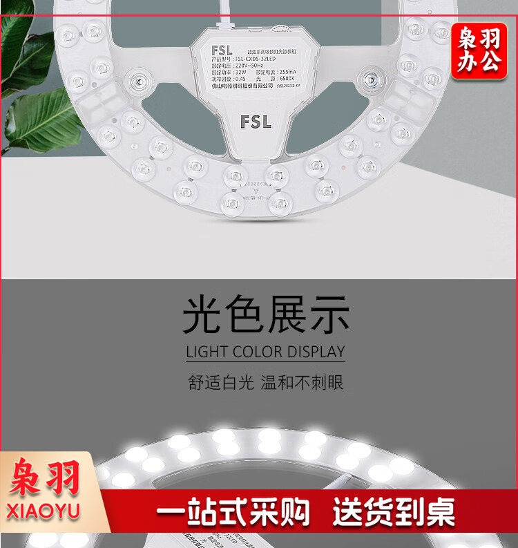 佛山照明(FSL)LED吸顶灯灯芯改造照明灯圆形灯盘环形灯管模组24W白光