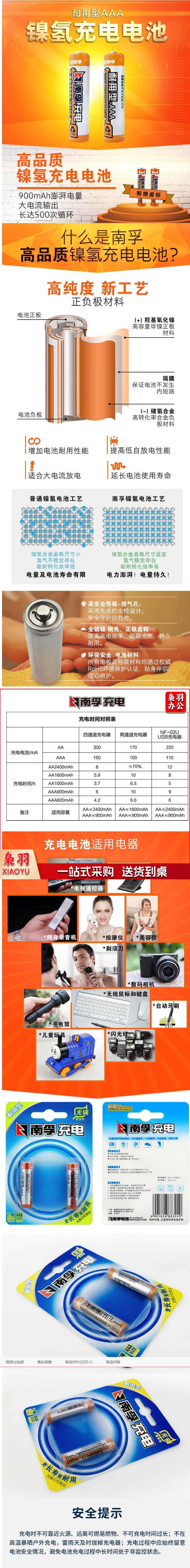 南孚 (NANFU)7号充电电池2粒 镍氢耐用型900mAh