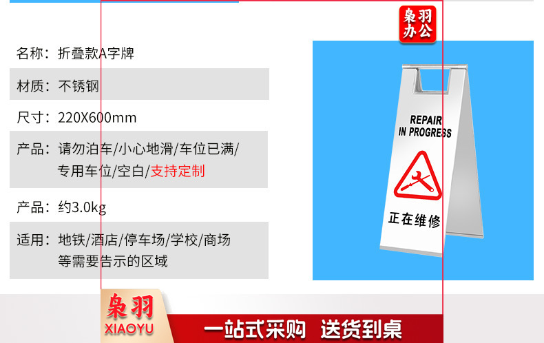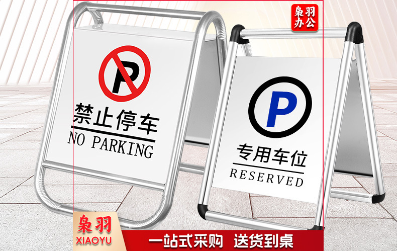 不锈钢禁止停车警示牌请勿泊车告示牌专用车位小心地滑a字警示牌(1.6kg-车位已满[可折叠,可灌沙])