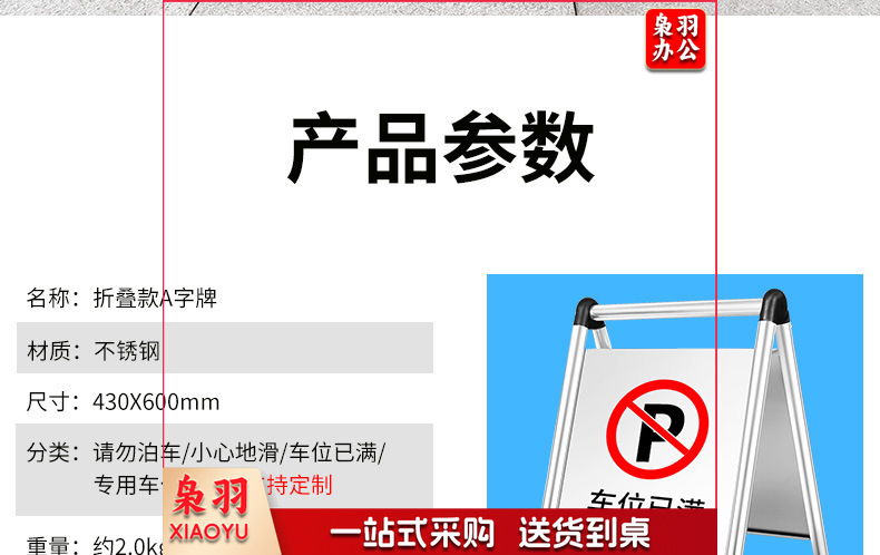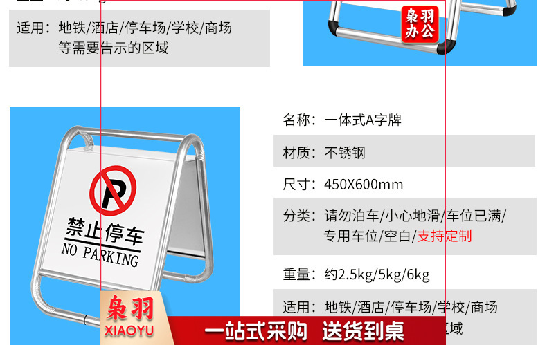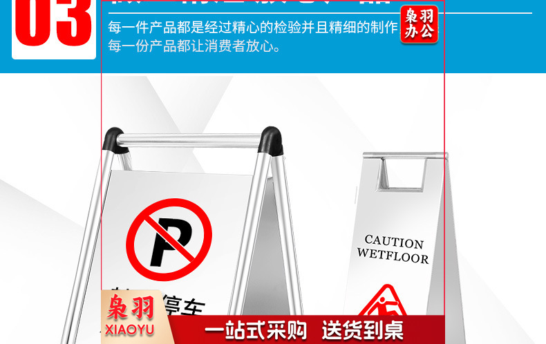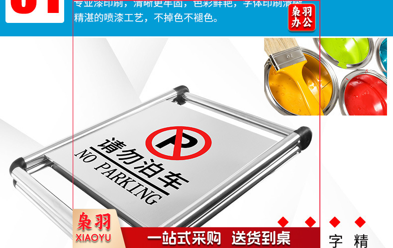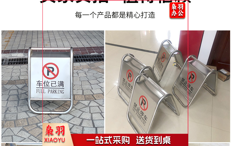 不锈钢禁止停车警示牌请勿泊车告示牌专用车位小心地滑a字警示牌( 304不锈钢一体)
