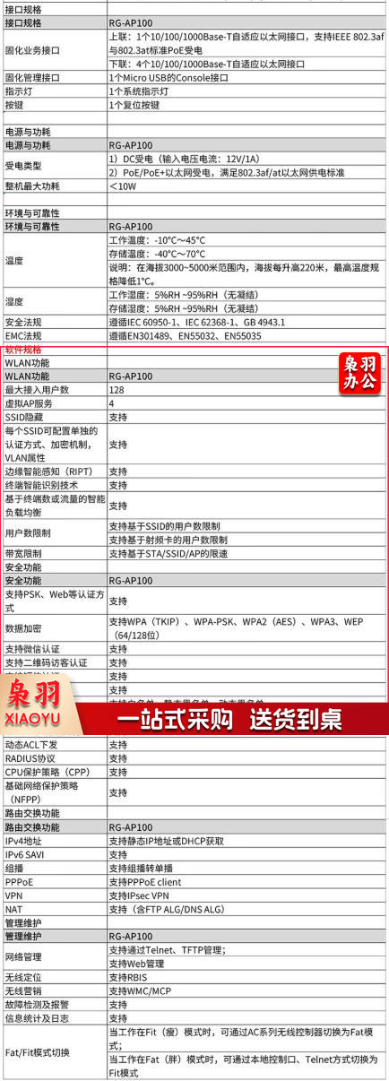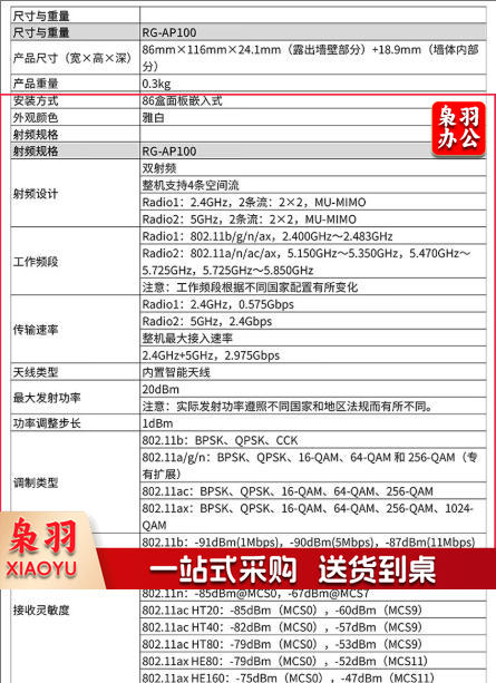 锐捷(Ruiie)RG-AP100 Wi-Fi6千兆面板AP 双频3000M 企业级通用面板型无线接入点