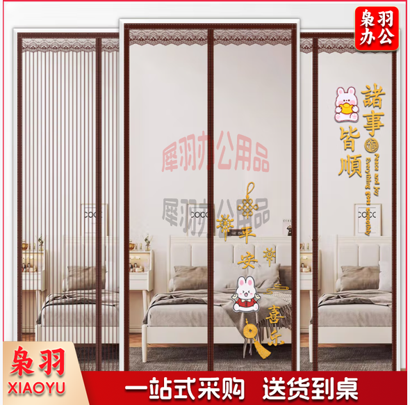魔术贴防蚊门帘磁 条纹咖啡色93*230cm
