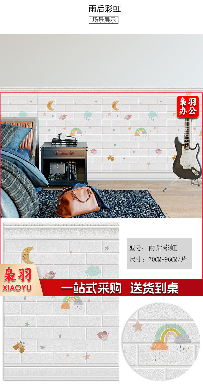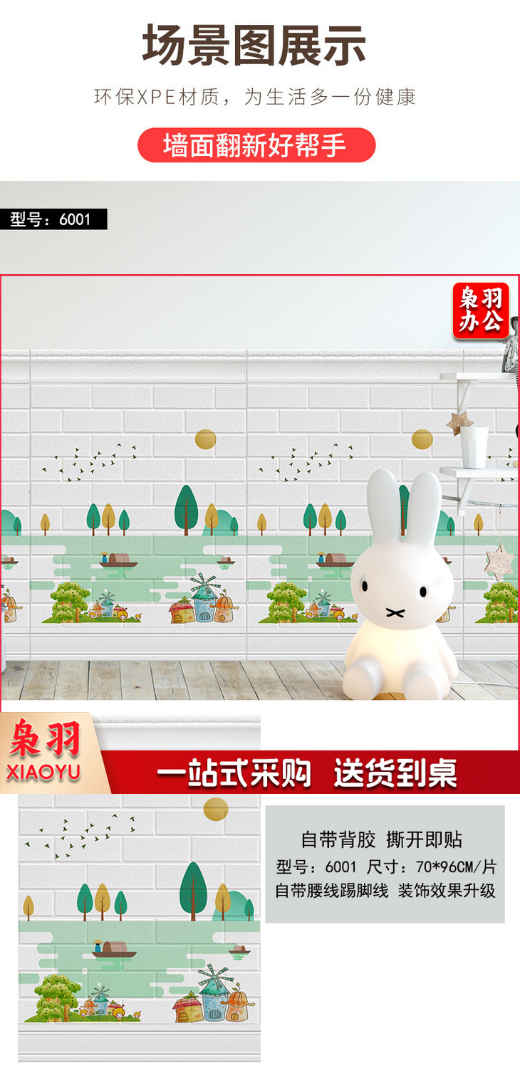 墙裙 墙围 护墙贴 墙贴 墙纸自粘卧室装饰儿童房布置防撞防水贴纸3d立体卡通墙裙泡沫呷鸣(墙裙70*90cm高)