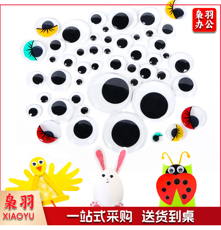 手工DIY(一站式采购 100多种款式)幼儿园手工材料扭扭棒纸杯眼睛diy手工儿童幼儿材料包美工区材料(黑色黑白彩色眼睛混装)