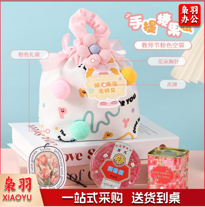 教师节礼物高级感送老师创意抽绳手提礼包实用学校活动员工伴手礼(教师节润喉糖礼袋二)2个起拍