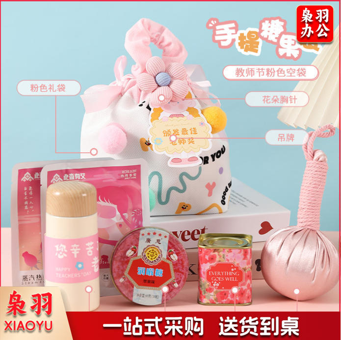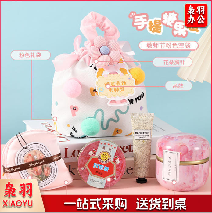 教师节礼物高级感送老师创意抽绳手提礼包实用学校活动员工伴手礼(教师节润喉糖礼袋)2个起拍