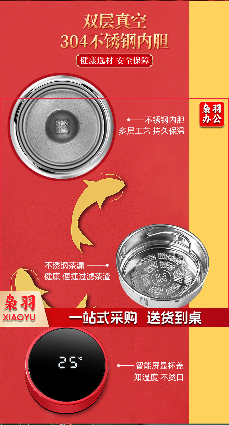 水杯定制雨伞定制商务伴手礼品套装公司企业银行周年庆定制礼物(红色温控杯/抽拉礼盒装