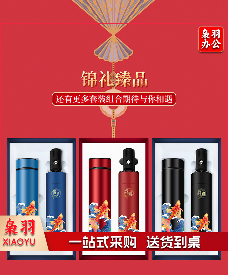水杯定制雨伞定制商务伴手礼品套装公司企业银行周年庆定制礼物(蓝色(温控杯+自动伞)抽拉礼盒装