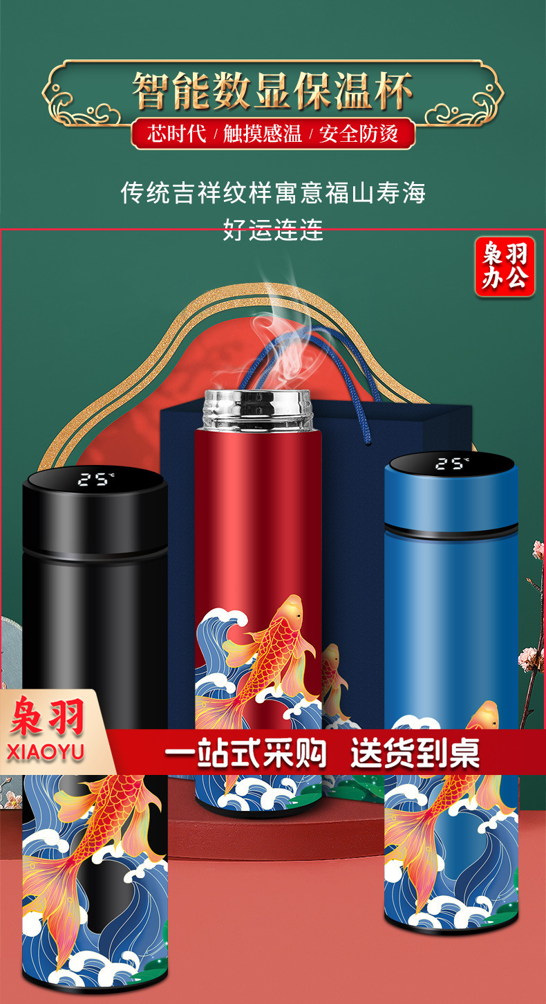 水杯定制雨伞定制商务伴手礼品套装公司企业银行周年庆定制礼物(蓝色(温控杯+自动伞)抽拉礼盒装