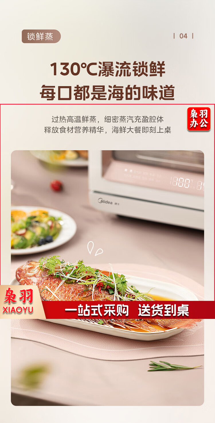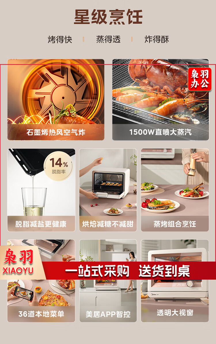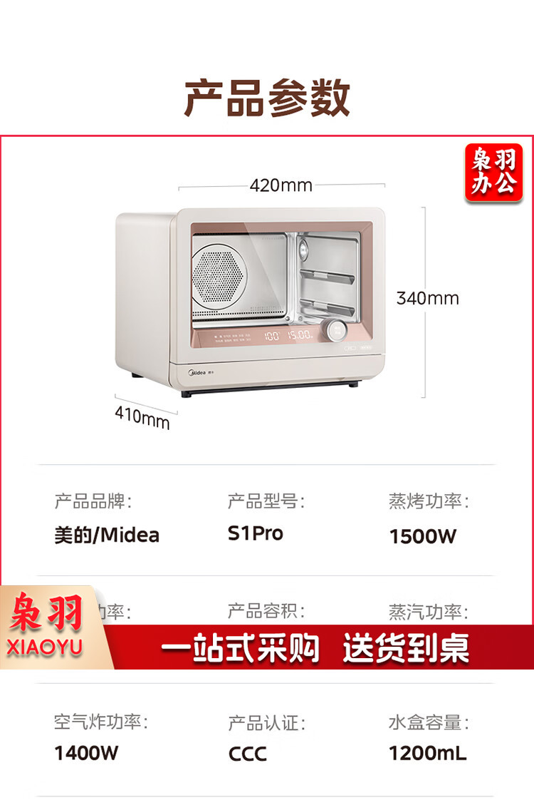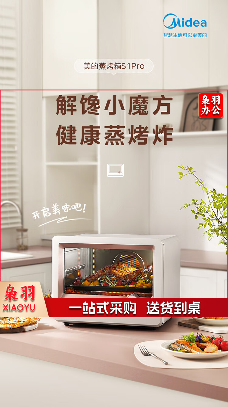美的(Midea)家用多功能蒸烤箱蒸烤炸一体机S1pro 石墨烯烤管/健康空气炸/高温锁鲜蒸/易清洁