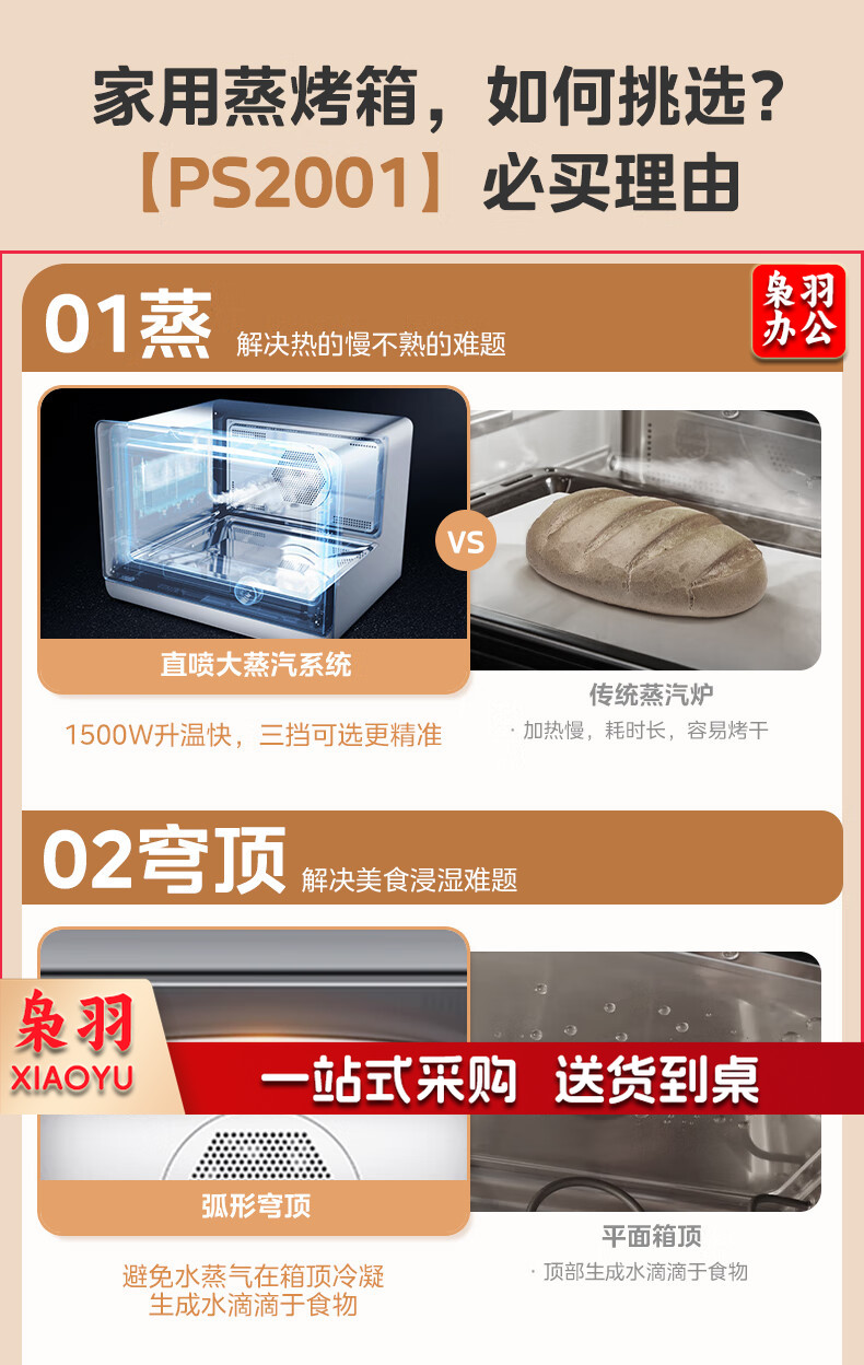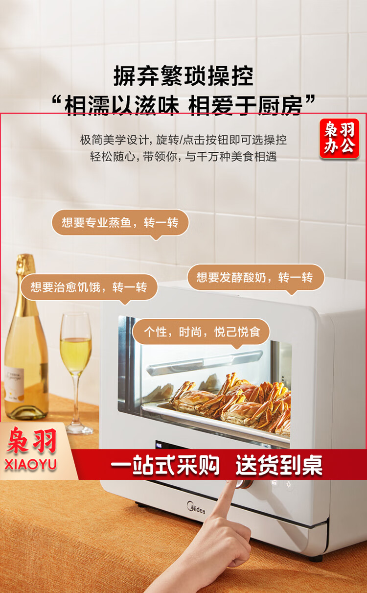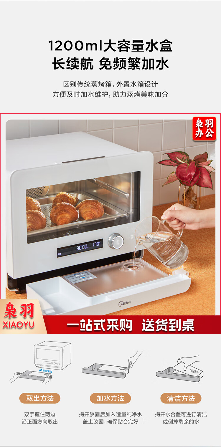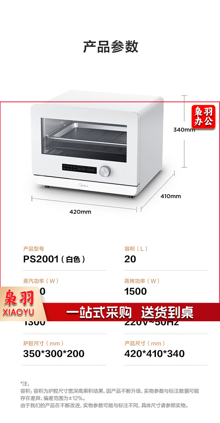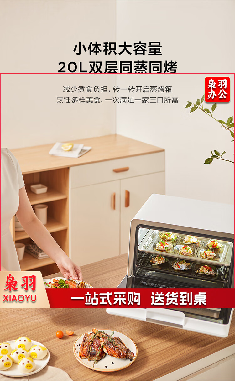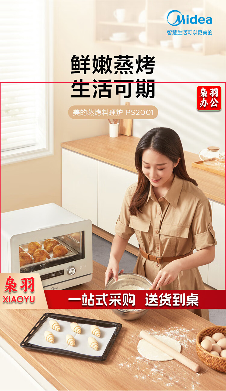 美的(Midea)乐见S1系列20L家用多功能料理炉电烤箱 蒸烤箱一体机 瀑流蒸汽/不锈钢内胆 PS2001
