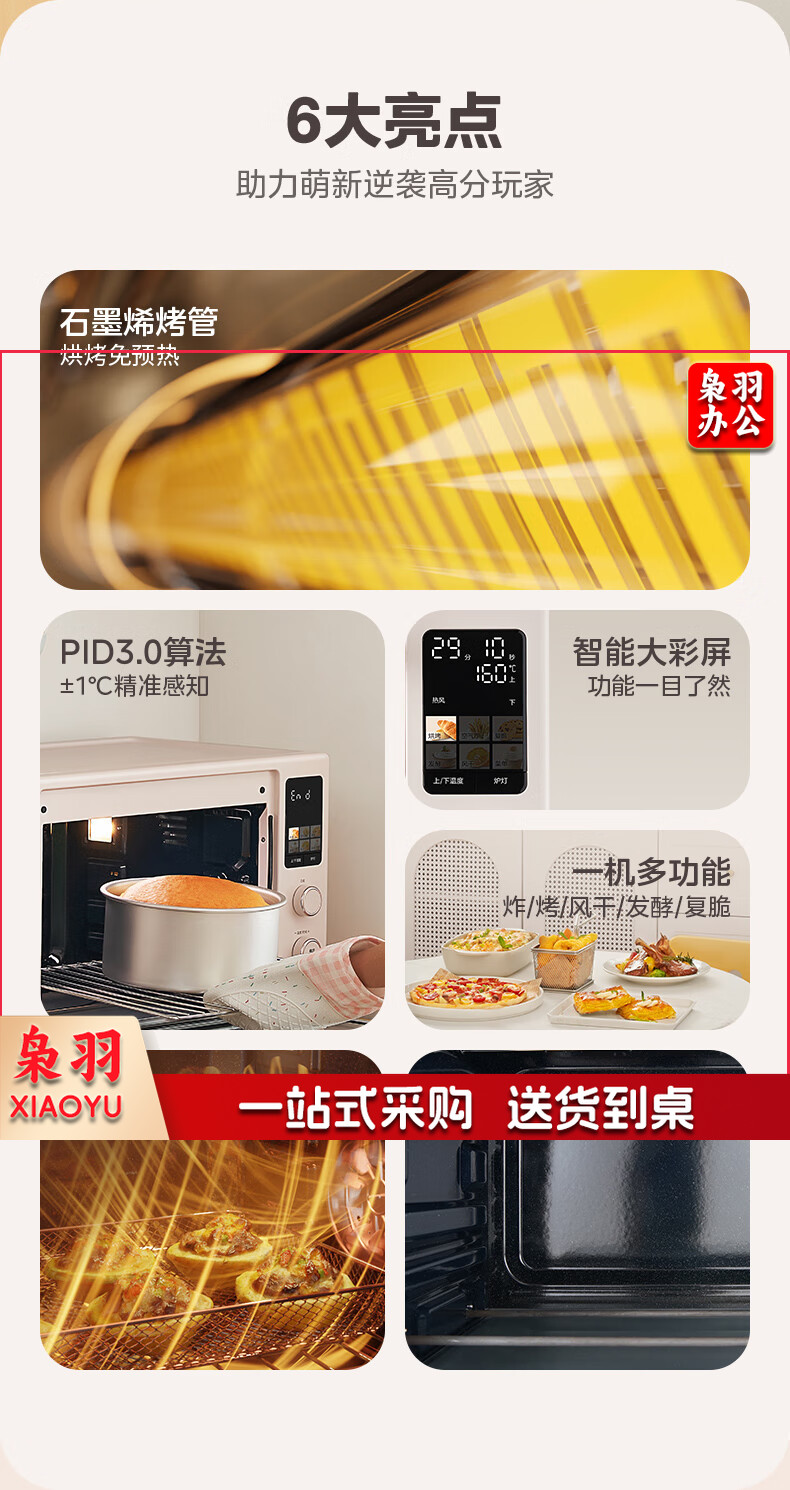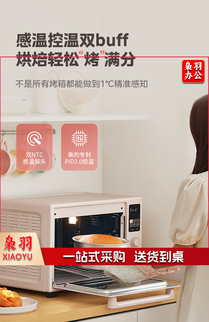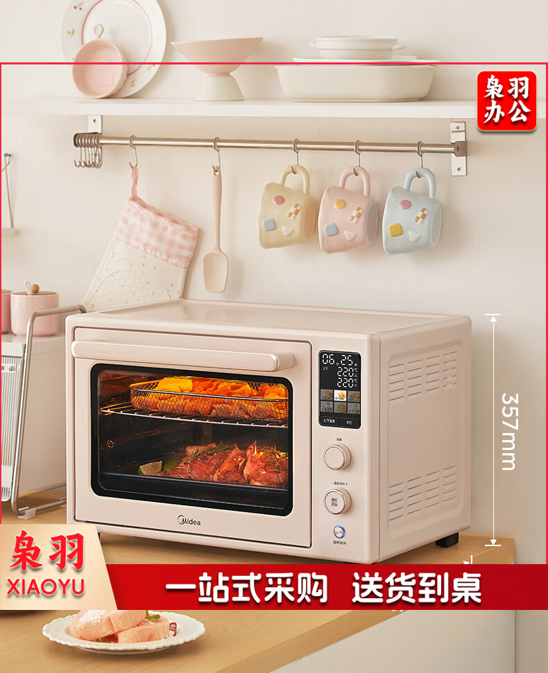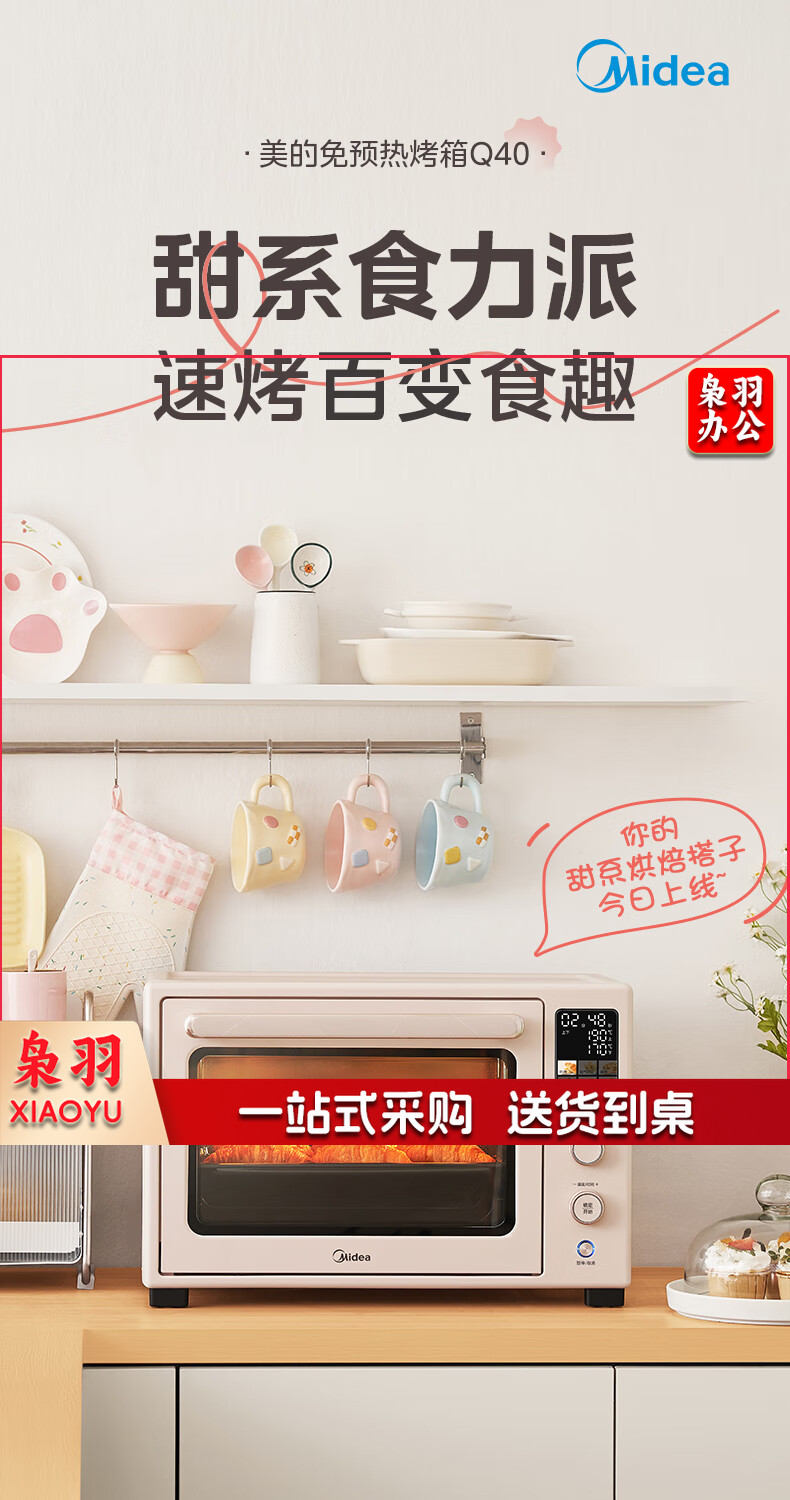 美的(Midea)Q40风炉家用多功能烤箱 石墨烯免预热/热风空气炸/四面搪瓷/彩屏屏显/复脆/发酵 奶油桃色