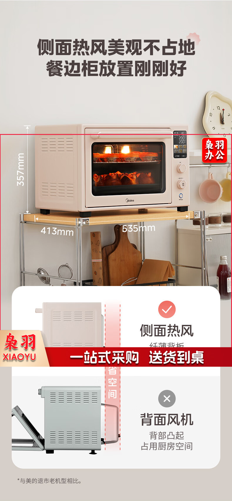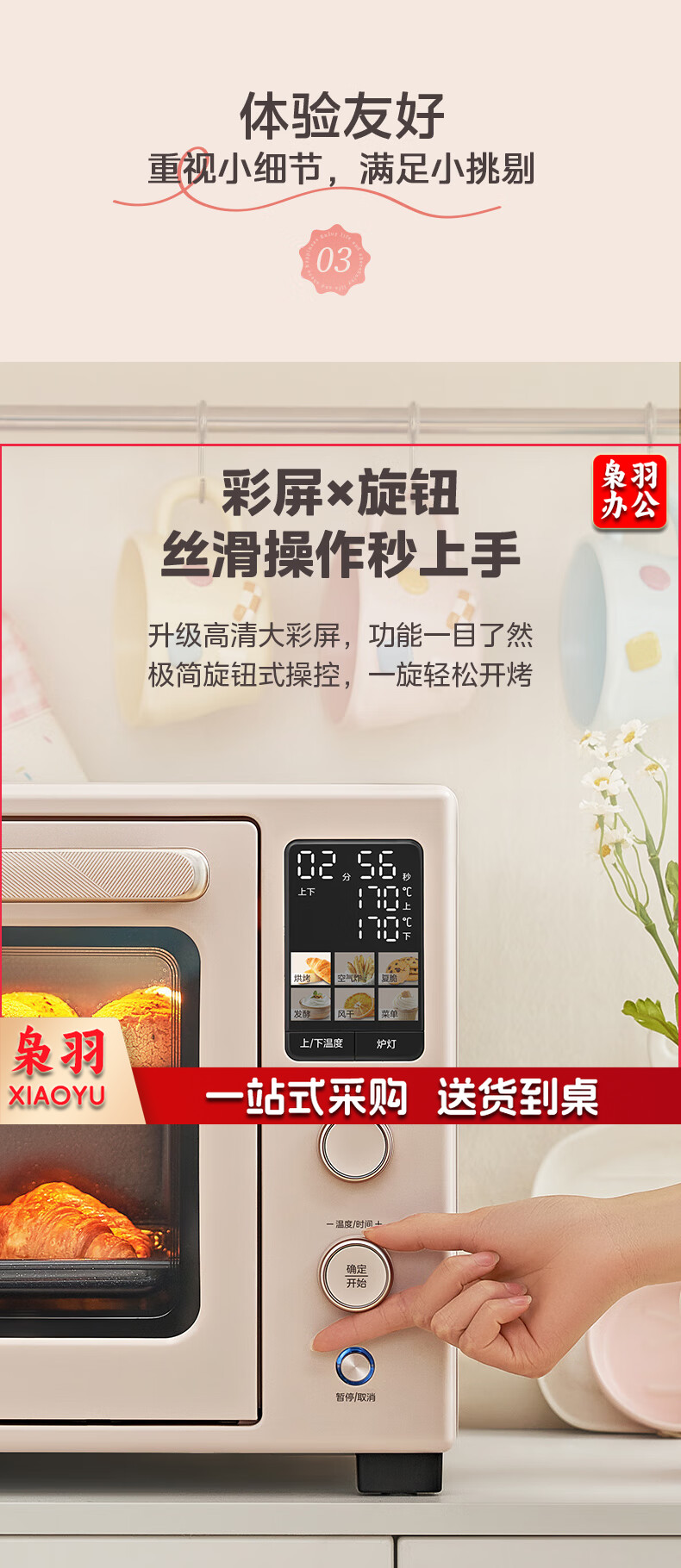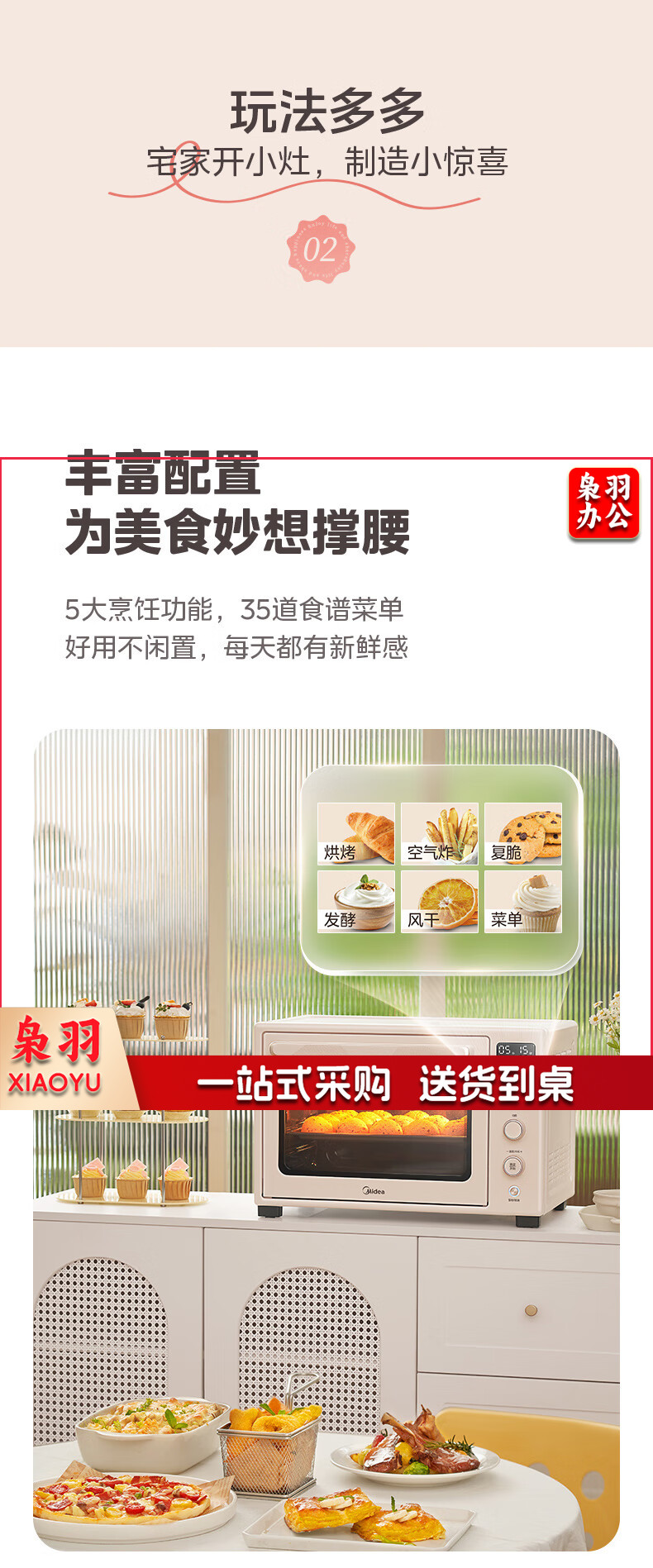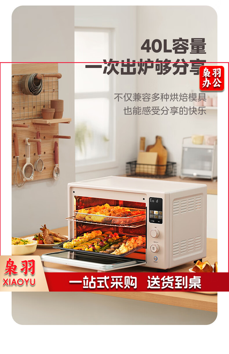 美的(Midea)Q40风炉家用多功能烤箱 石墨烯免预热/热风空气炸/四面搪瓷/彩屏屏显/复脆/发酵 奶油桃色