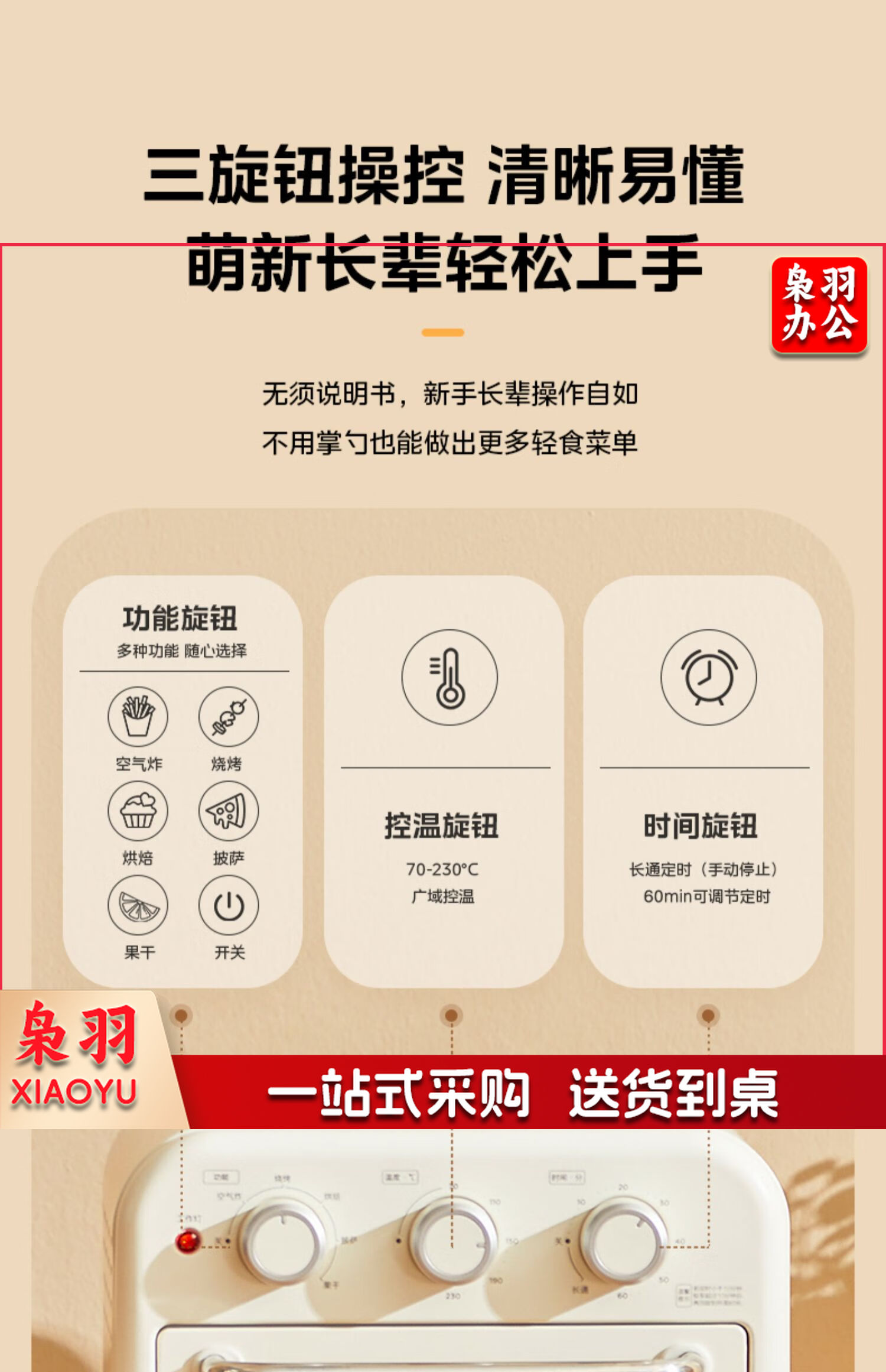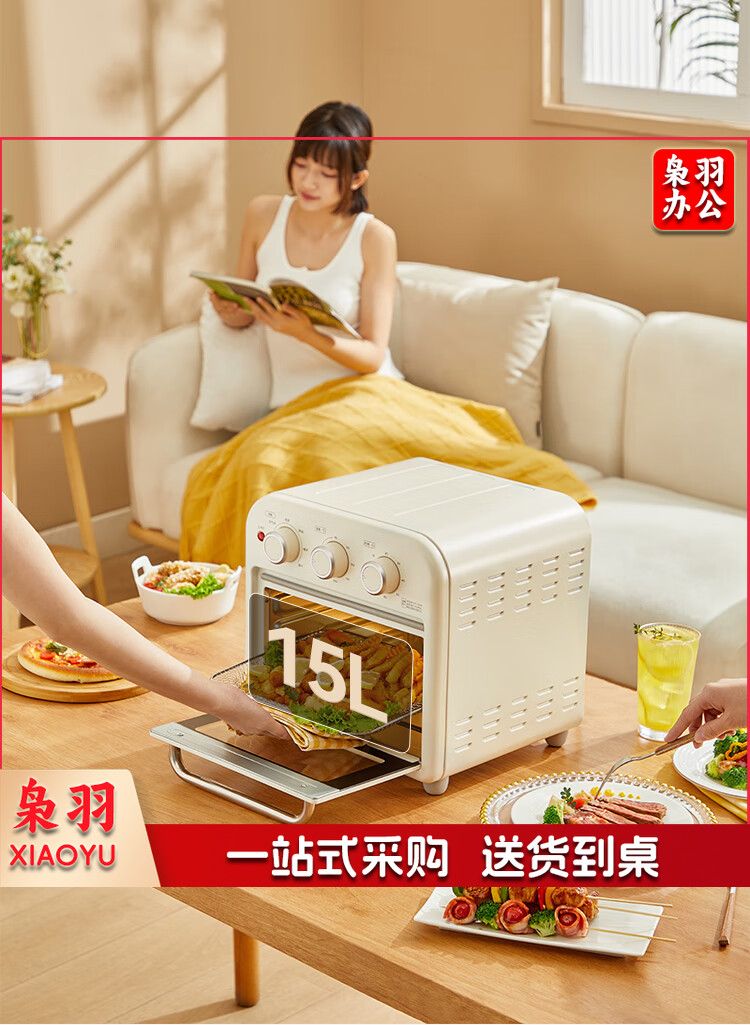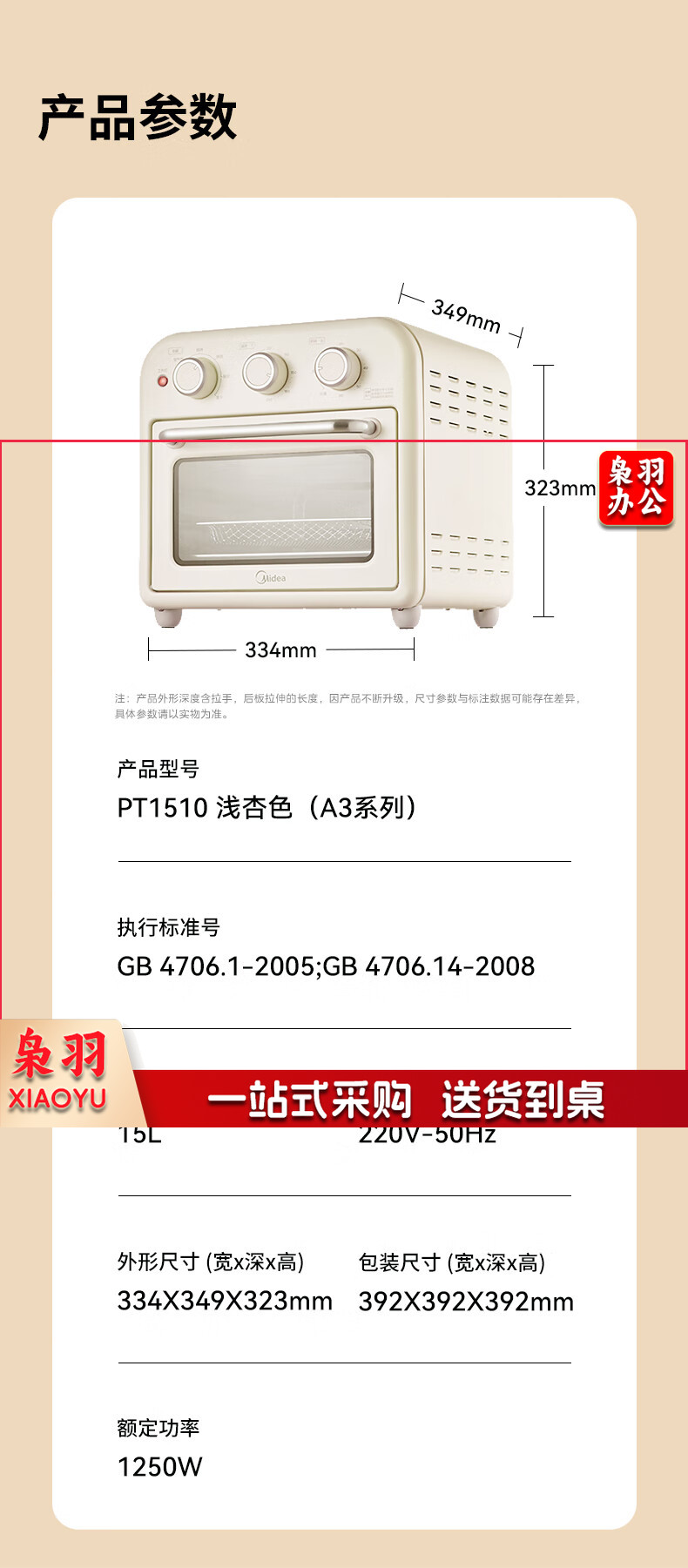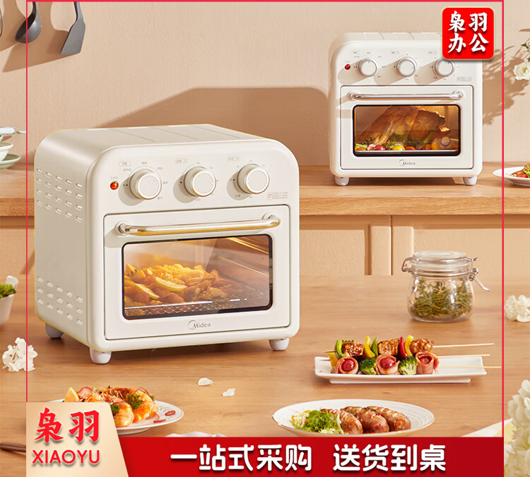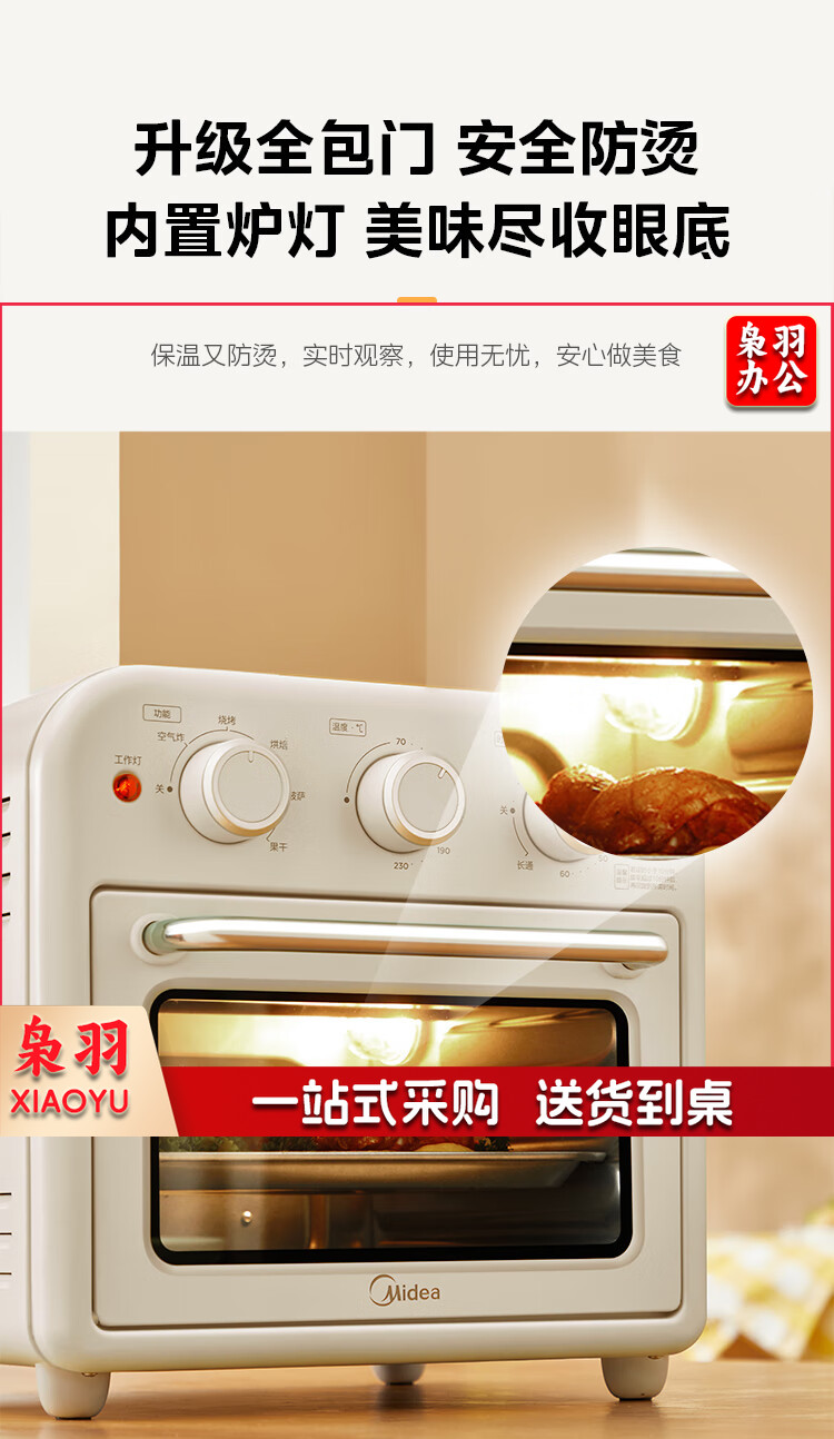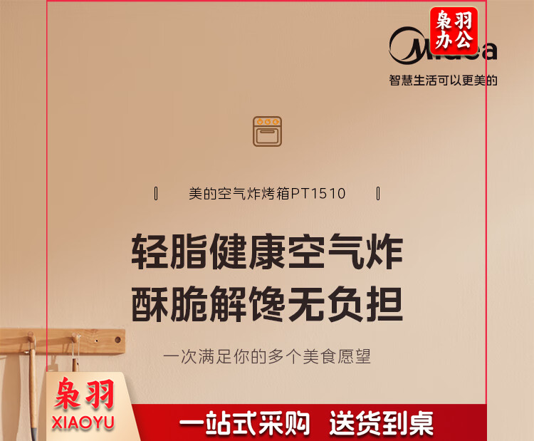 美的(Midea)家用多功能空气炸锅电烤箱一体机 高效脱脂/可视化/循环热风免翻面 15L浅杏色PT1510