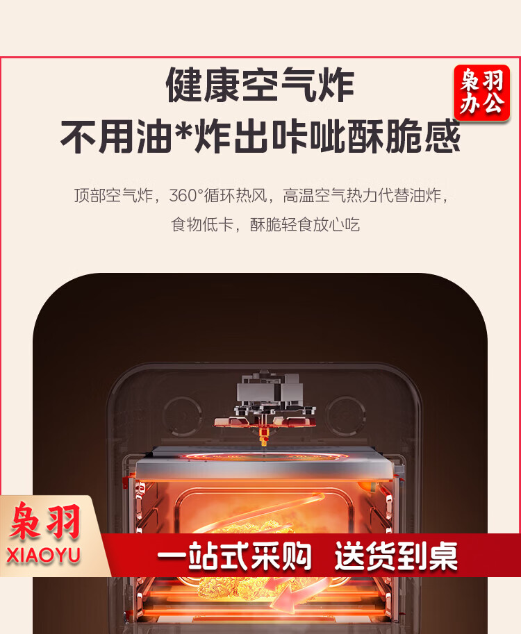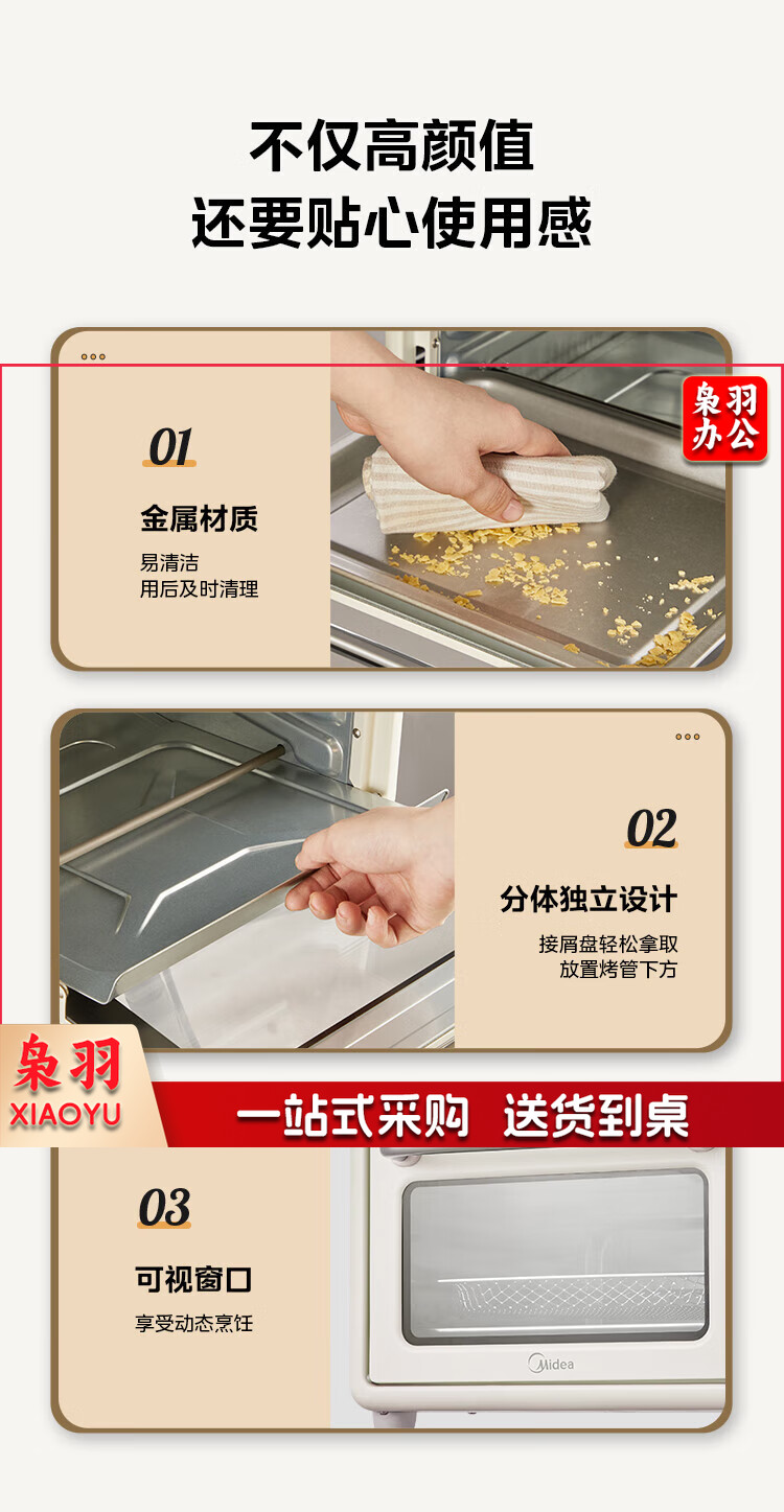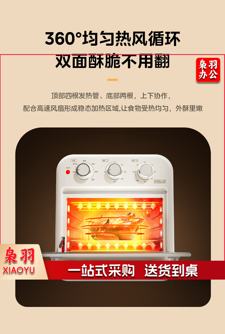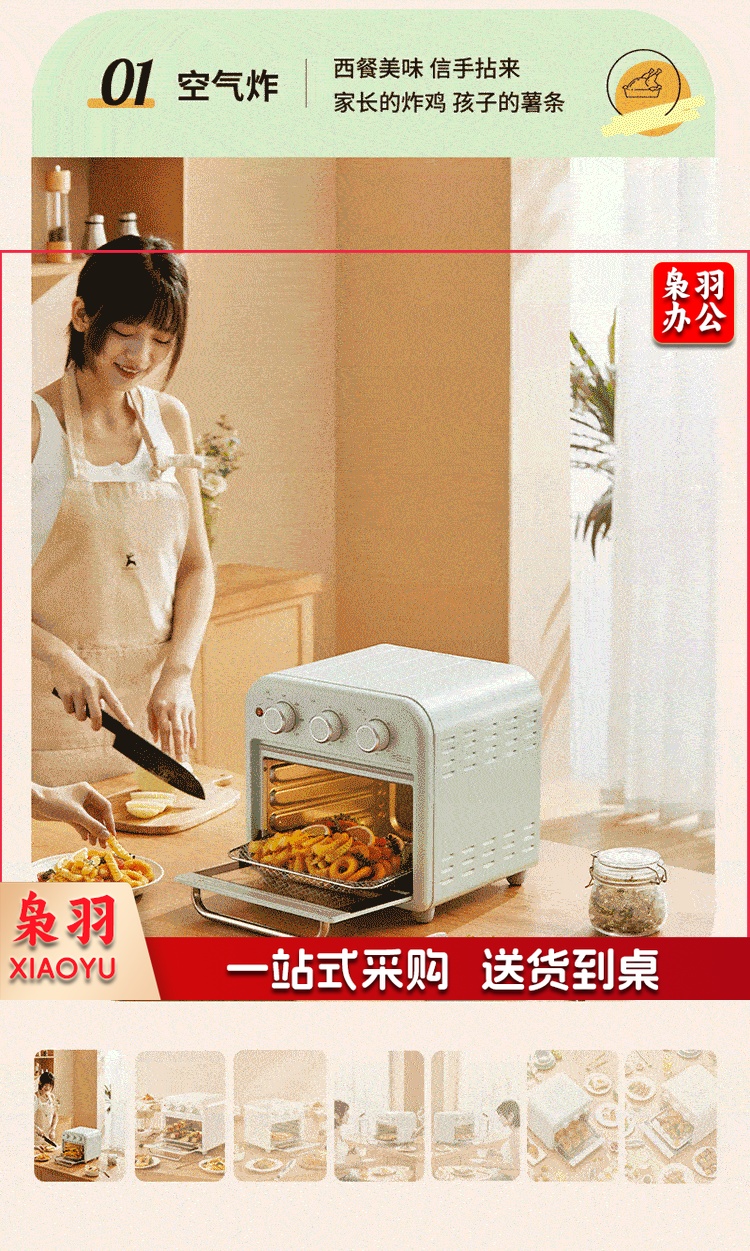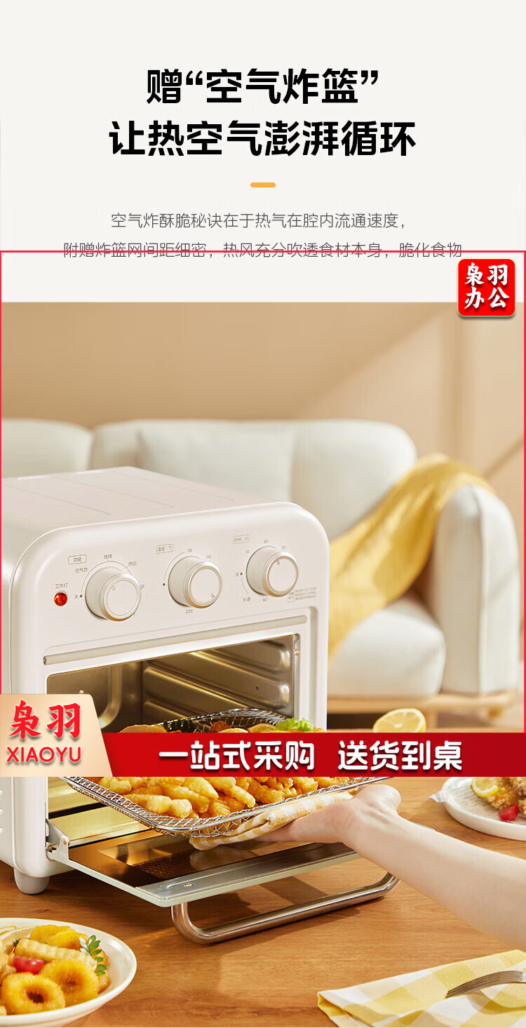 美的(Midea)家用多功能空气炸锅电烤箱一体机 高效脱脂/可视化/循环热风免翻面 15L浅杏色PT1510