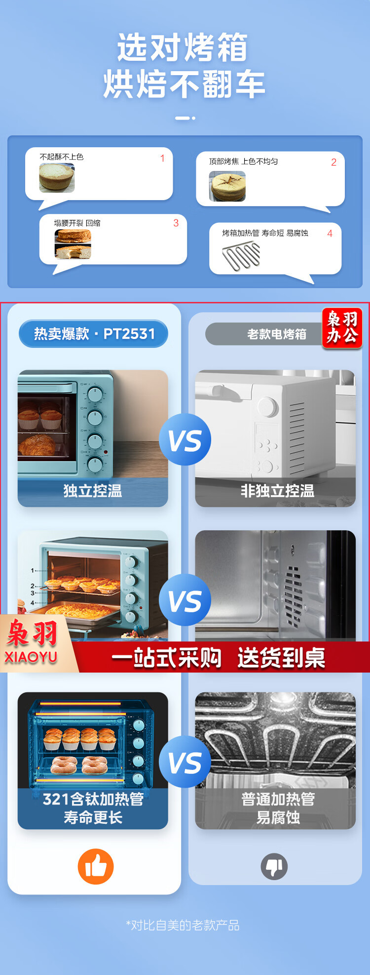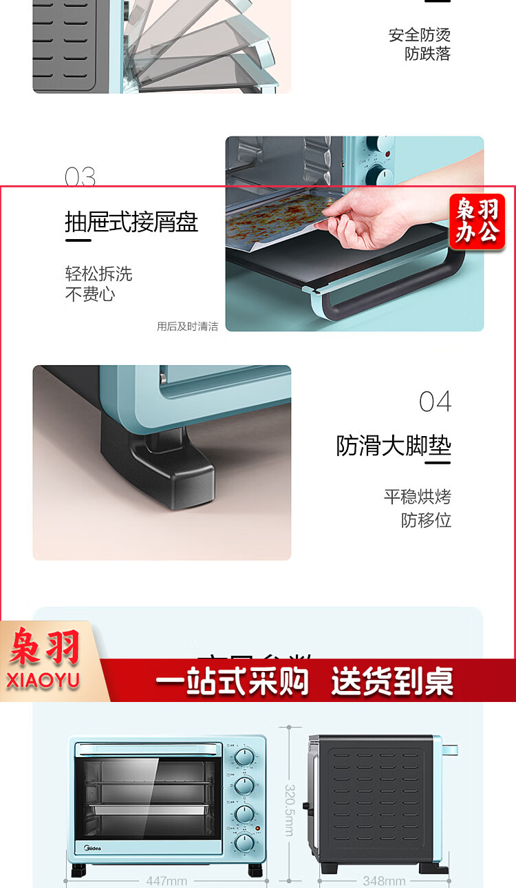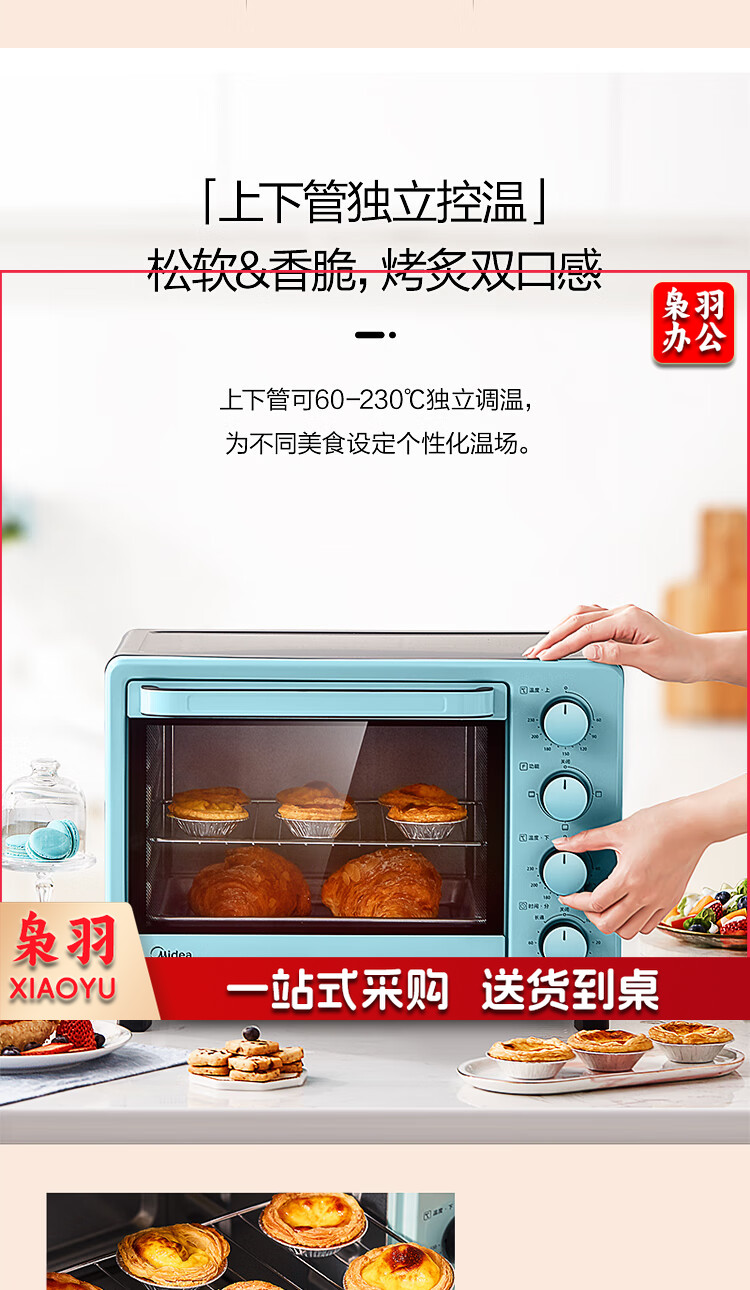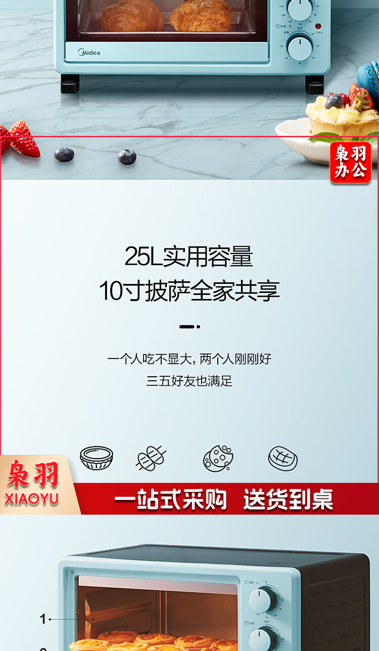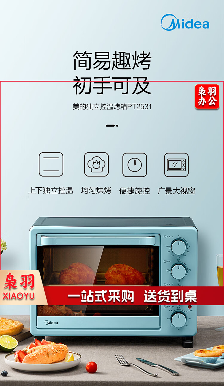 美的(Midea)家用多功能电烤箱 25升 机械式操控 上下独立控温 专业烘焙易操作烘烤蛋糕面包PT2531