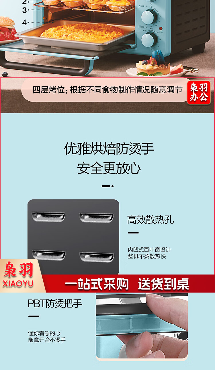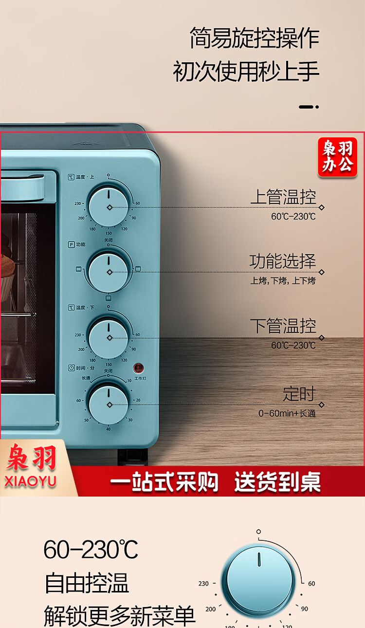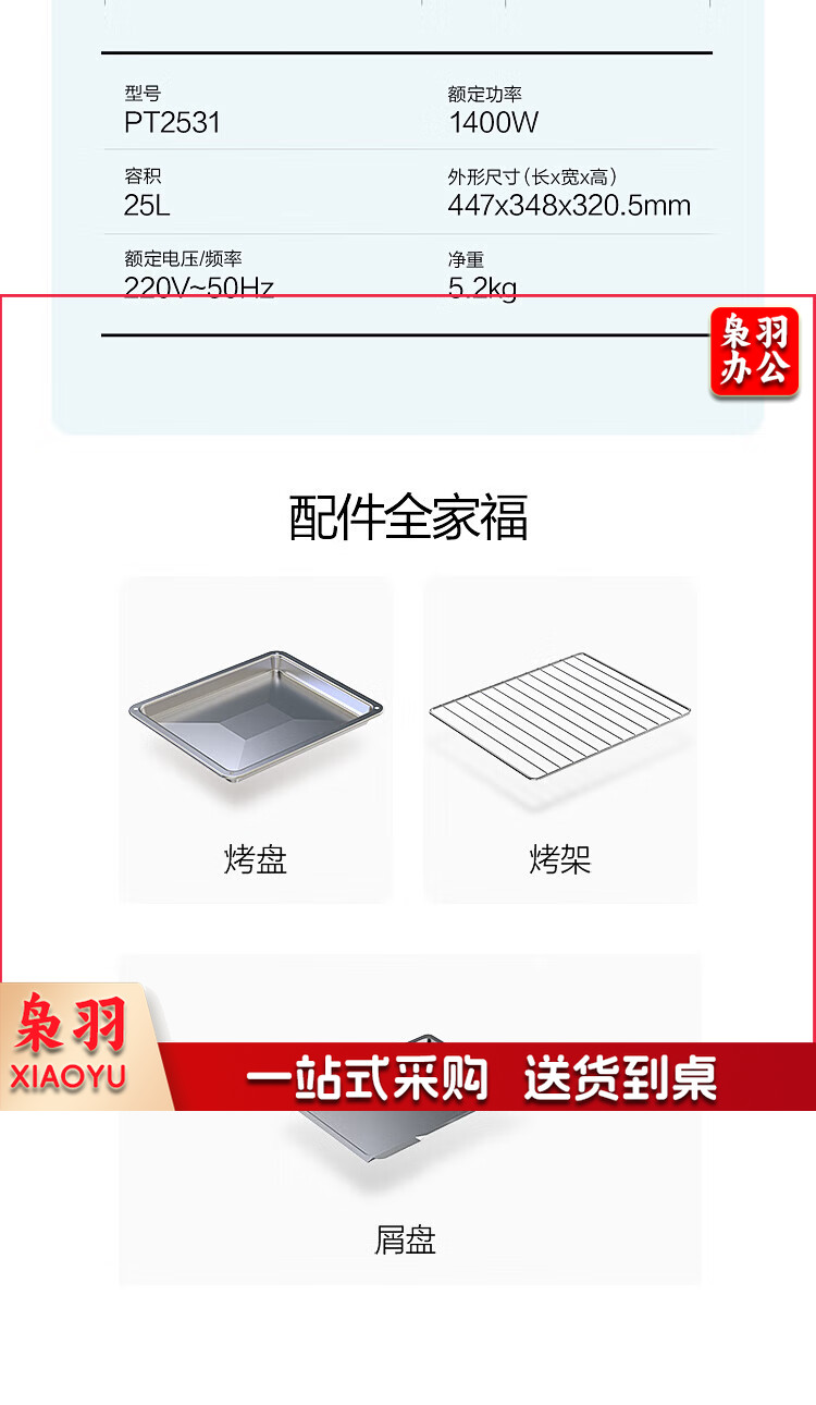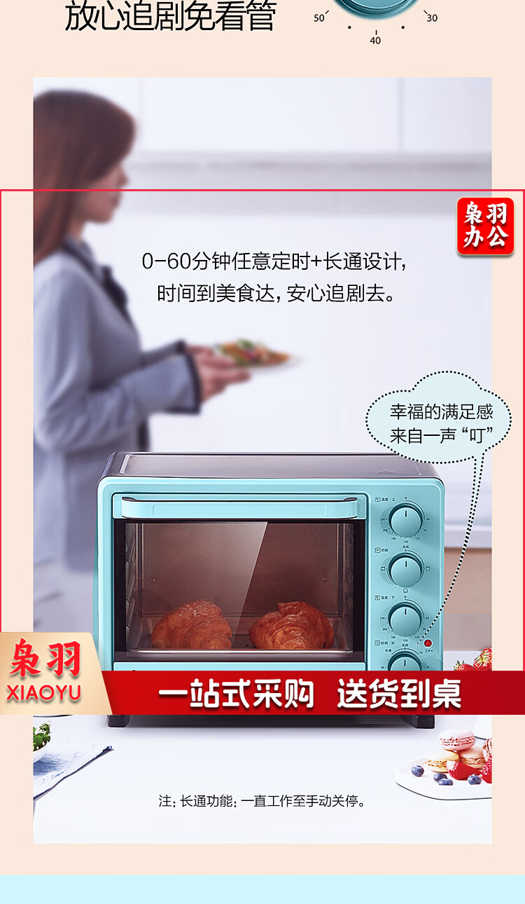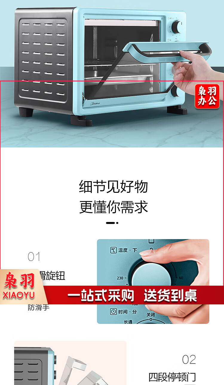 美的(Midea)家用多功能电烤箱 25升 机械式操控 上下独立控温 专业烘焙易操作烘烤蛋糕面包PT2531
