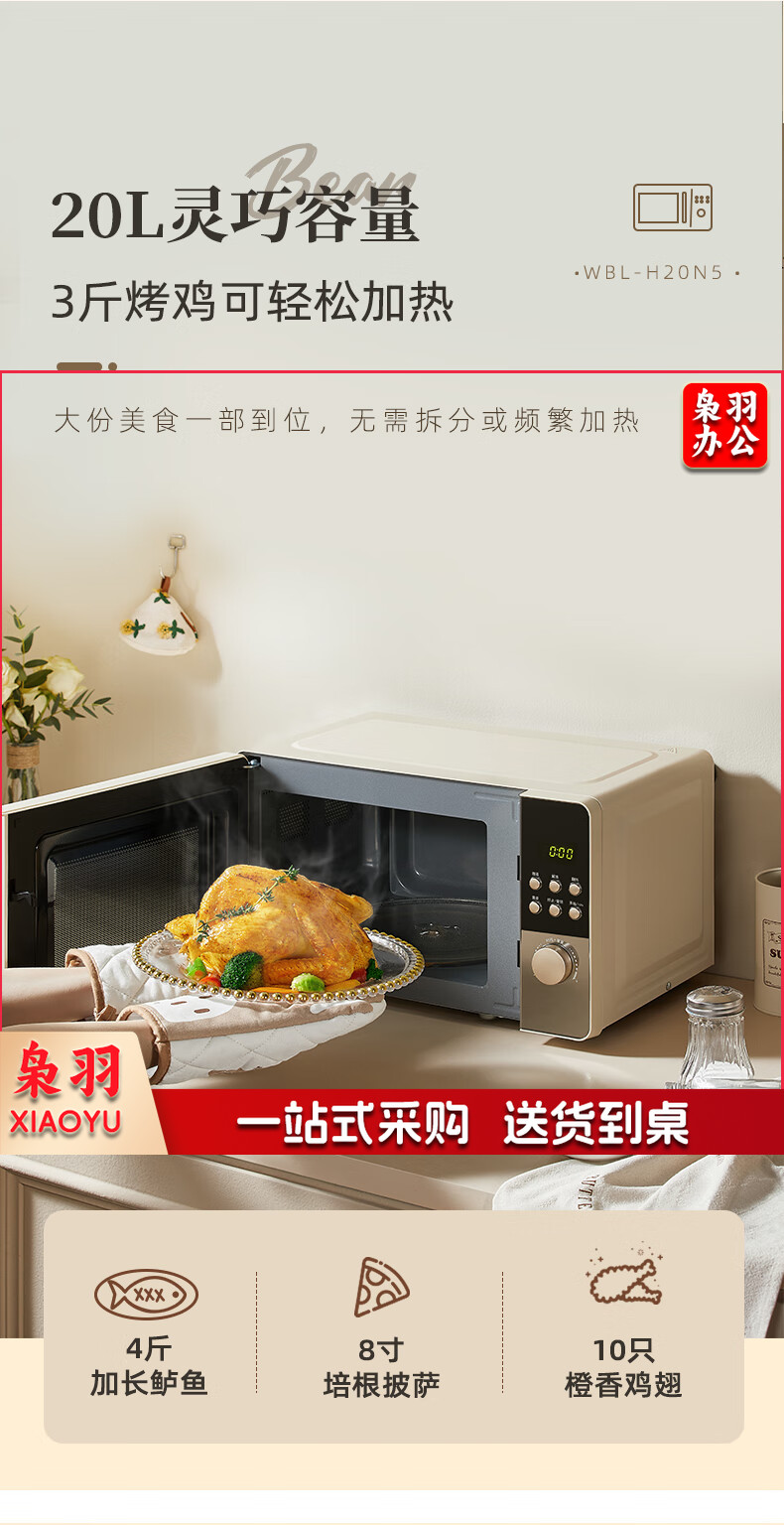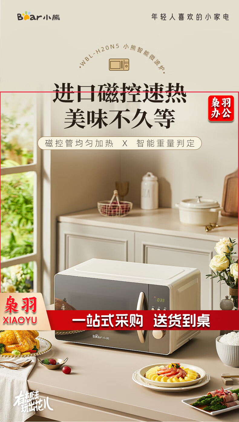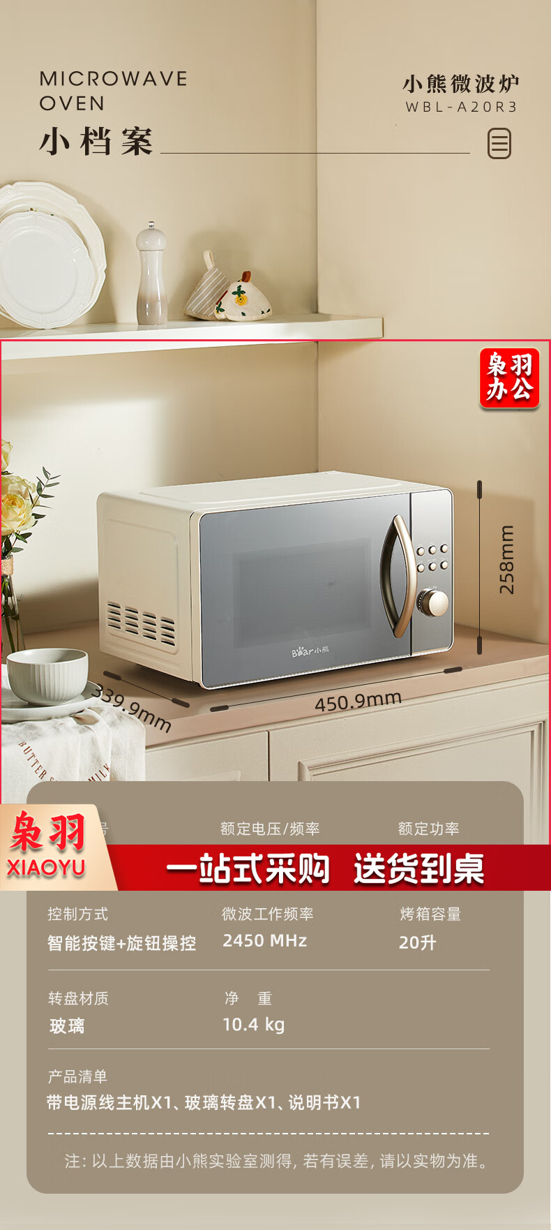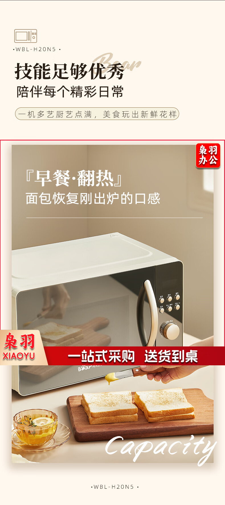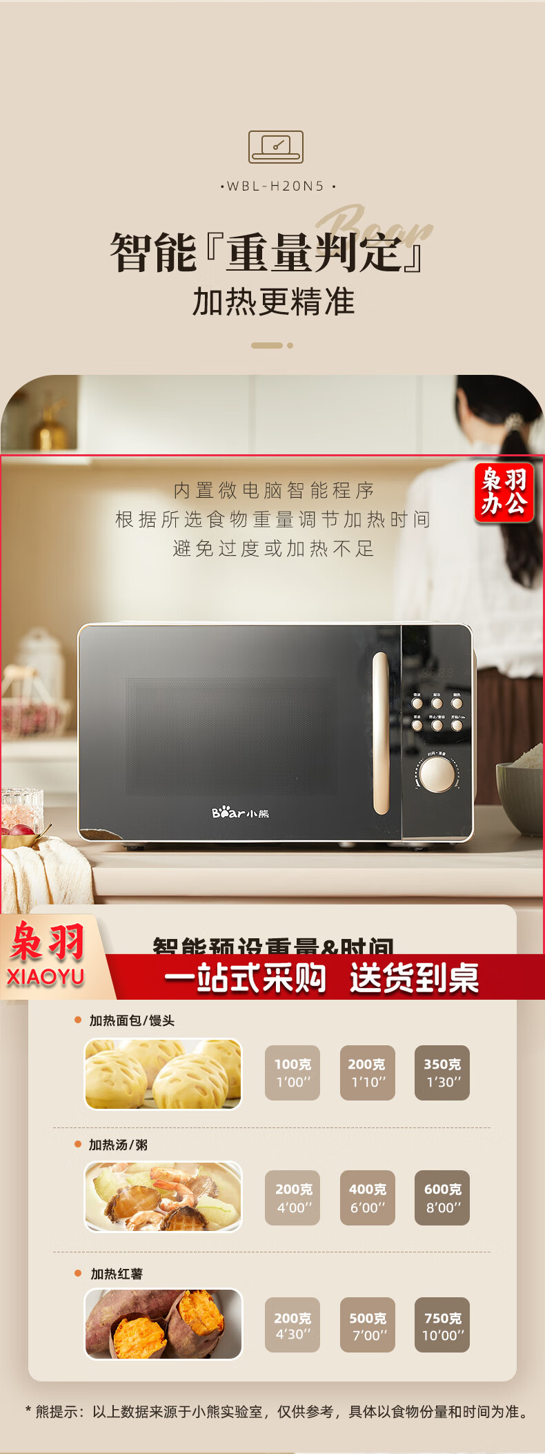 小熊(Bear)微波炉小型迷你家用预设菜单计重加热智能平板多功能转盘一体机WBL-H20N5