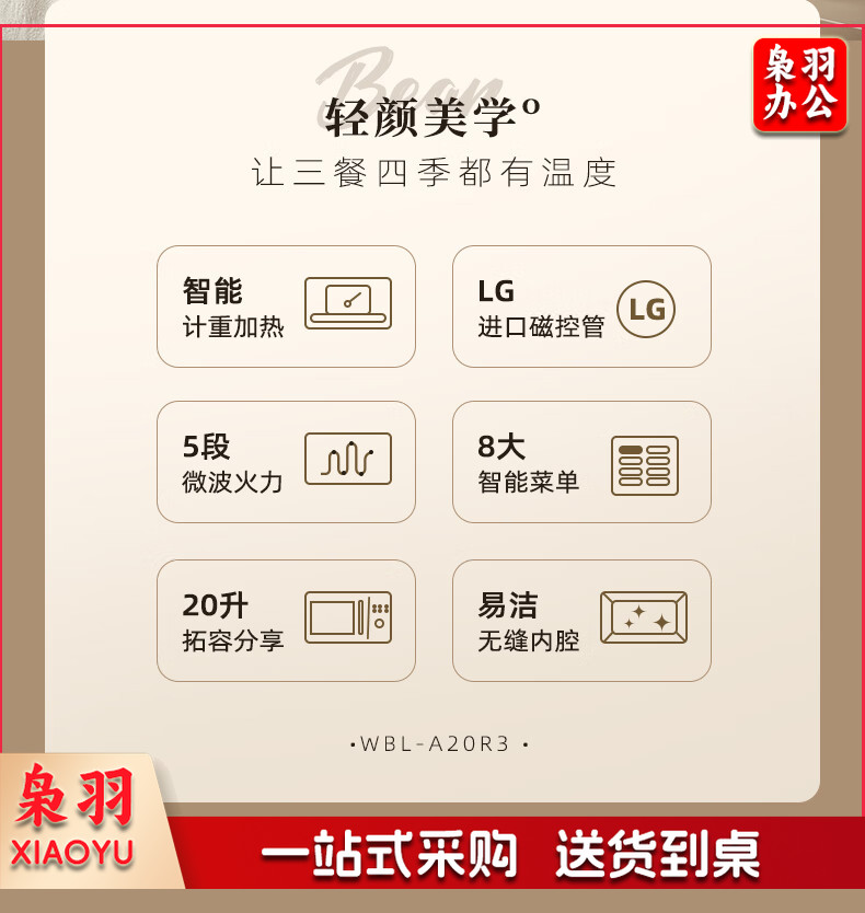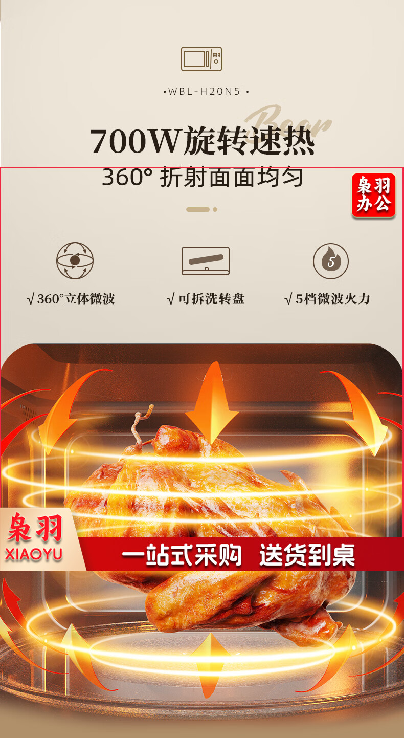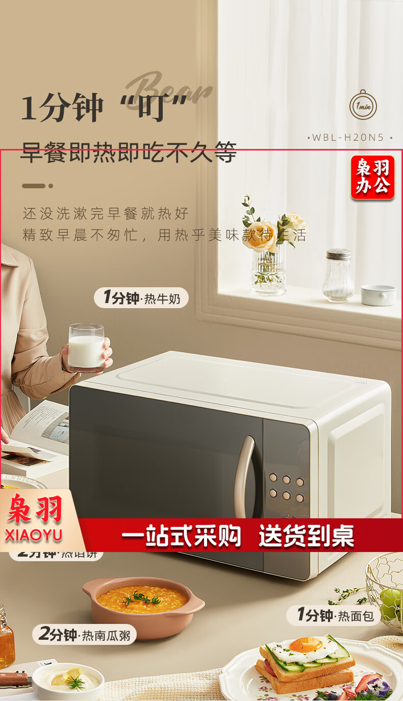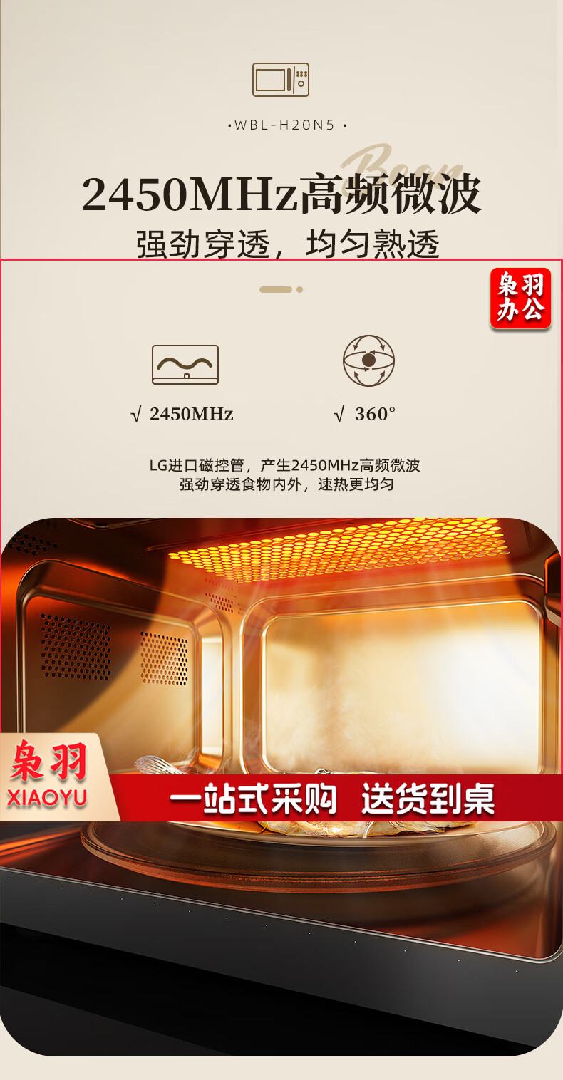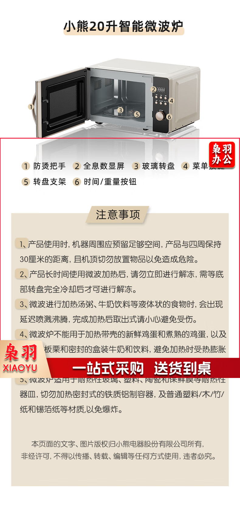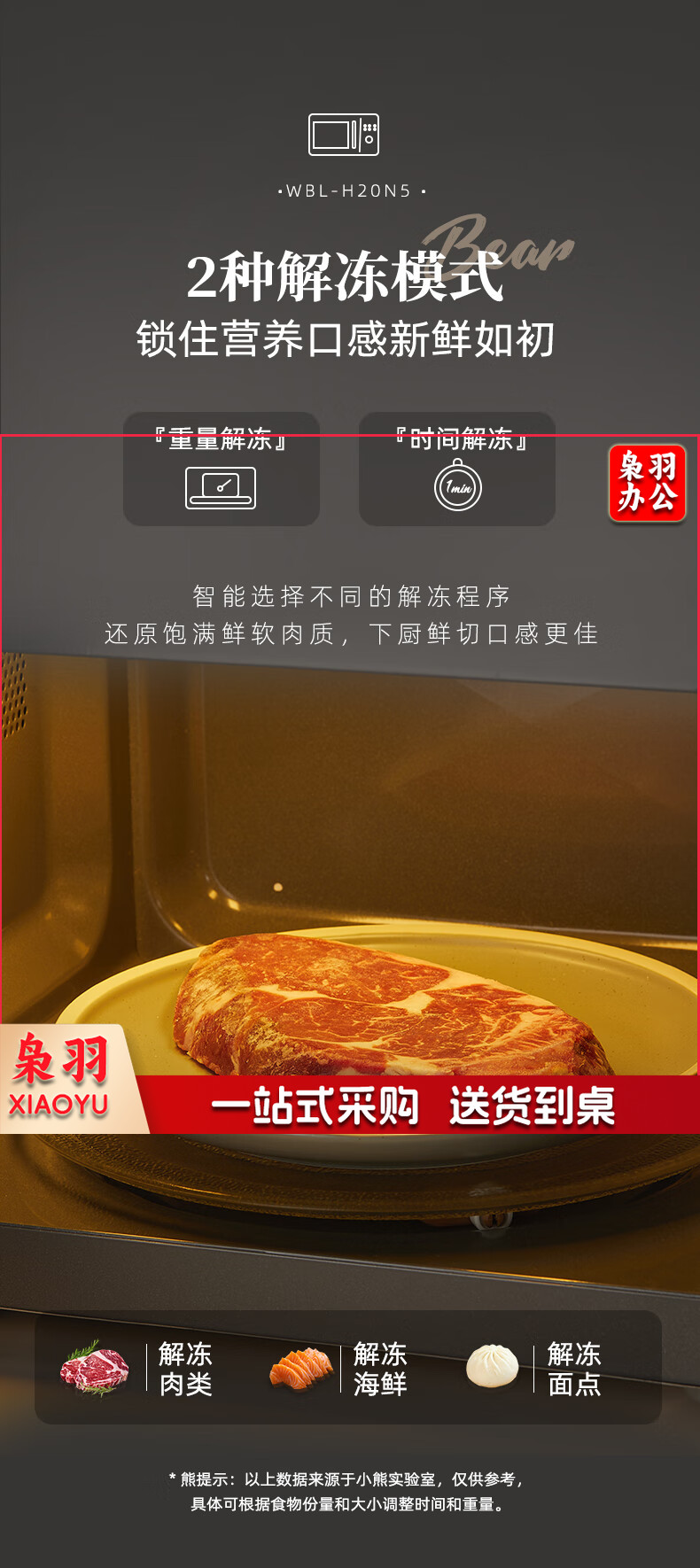 小熊(Bear)微波炉小型迷你家用预设菜单计重加热智能平板多功能转盘一体机WBL-H20N5